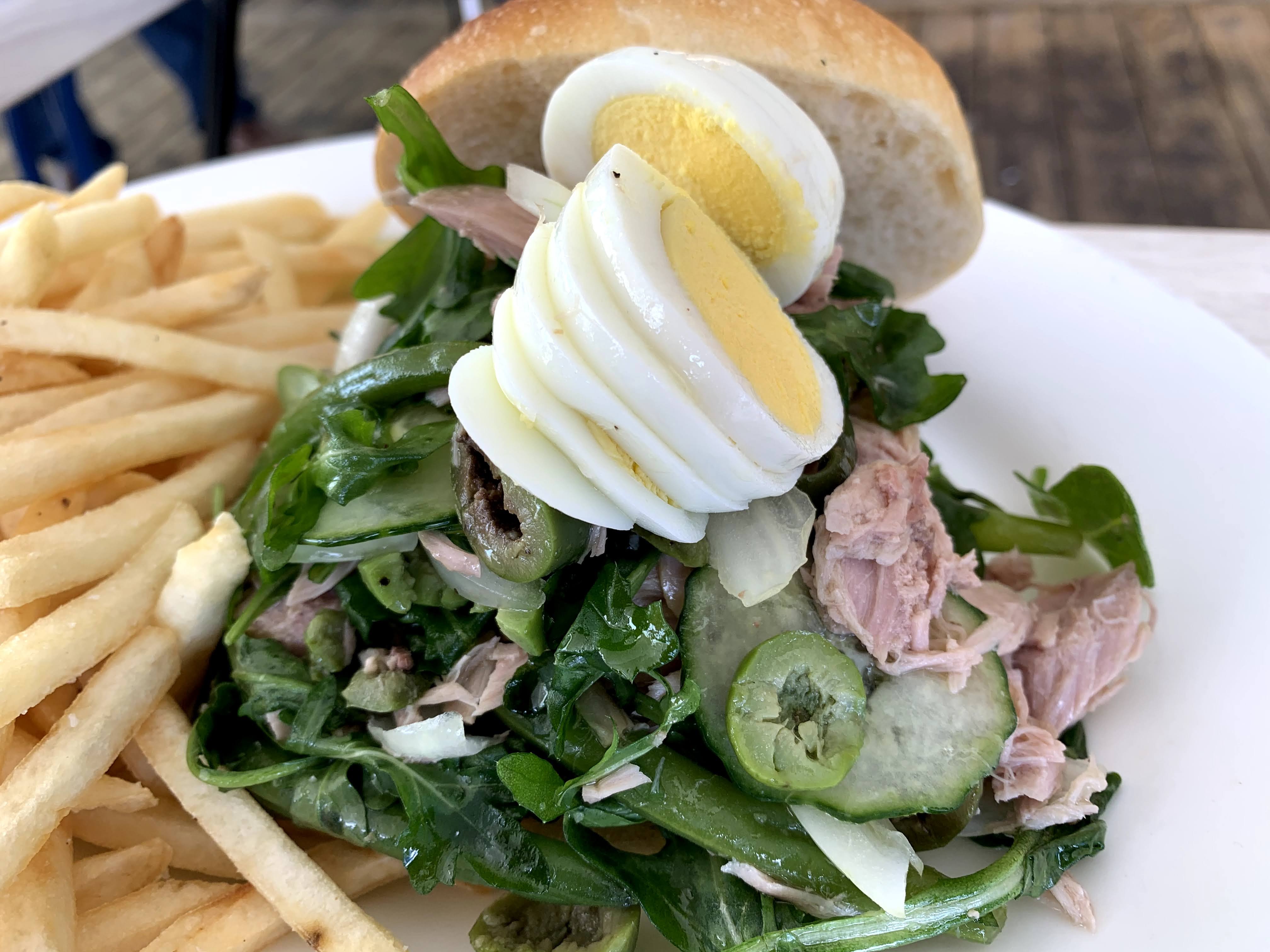 Tonno was displaying a sandwich sign on Main Street noting they were offering brunch on Monday, the Memorial Day holiday and we impulsively decided to give it a try. I think the weather kept some of the bigger crowds away and we were able to sit at the bar for our meal. We were served efficiently and in a friendly manner, as we always are when we visit Tonno. It was delightful to sit at the bar and the lunch/brunch menu was more than adequate.