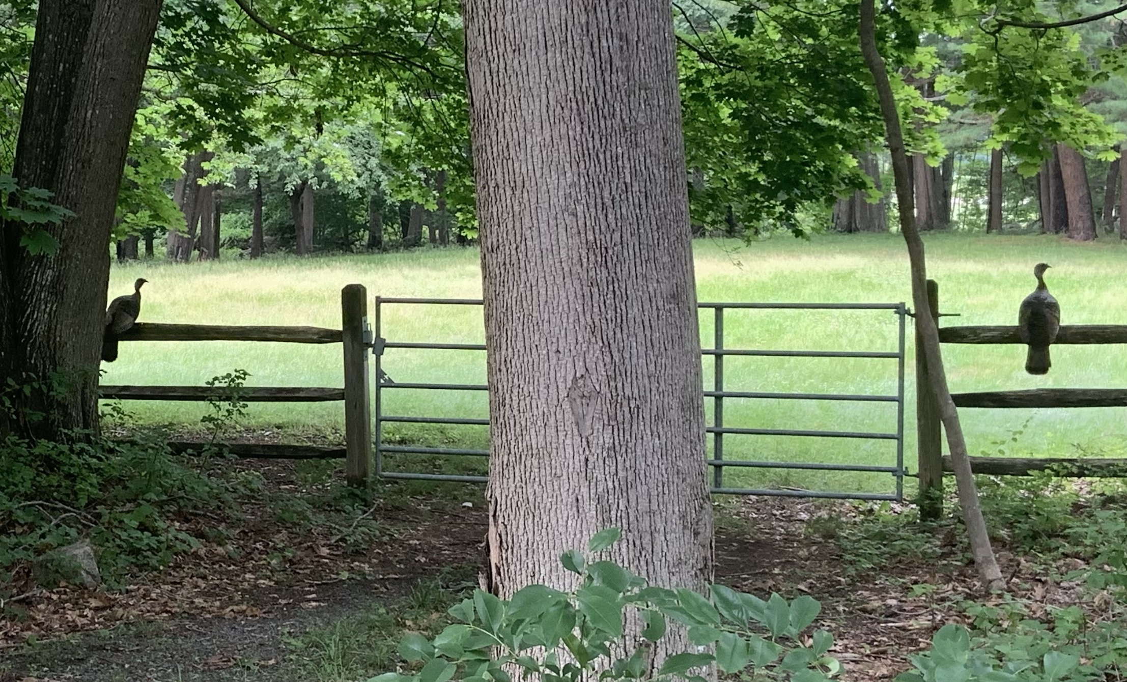 This should improve any fowl moods out there. Just a couple of neighbors talking over the fence in Magnolia.