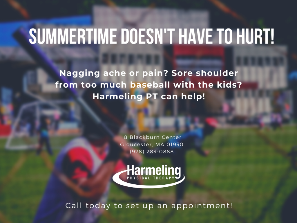 If all that summer fun is leaving your muscles and joints a bit achy, physical therapy might help! Come on over the Harmeling PT in Gloucester and have one of our expert therapists help you out. We’re here to get you back in the game!