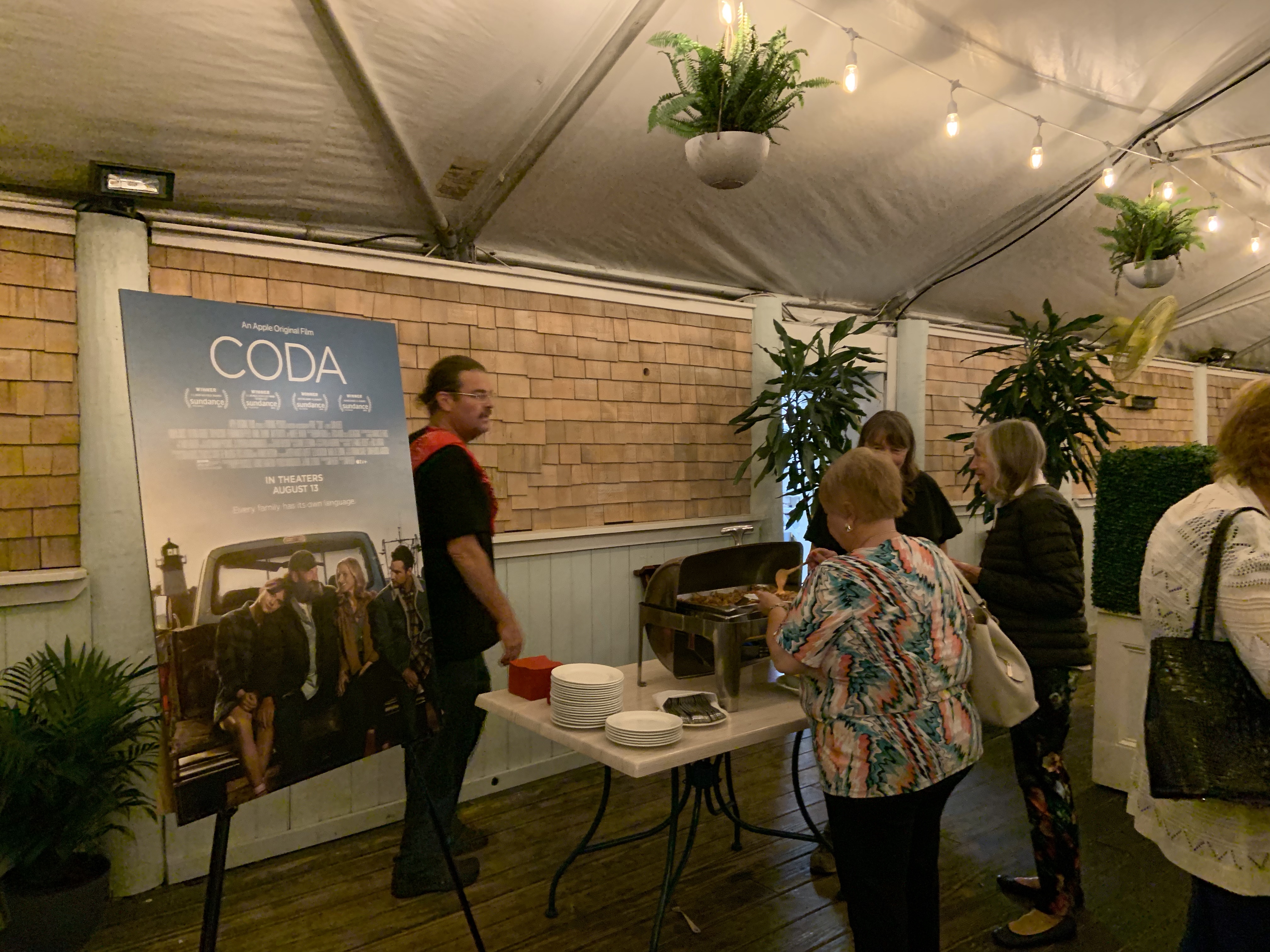 The after party was held at Mile Marker One and the chef and staff knocked it out of the park. Food stations were set up with hors d oeuvres inlcuding shrimp and flatbread pizzas. The staff was plentiful supplying drinks and restocking the food. It was a great setting for the cast and crew to enjoy the fruits of their labors. The LA premiere cannot be held due to COVID concerns out there, and director Sian Heder noted Gloucester’s premiere was THE premiere. It was an honor to attend and PLEASE do yourself a favor and watch the movie!