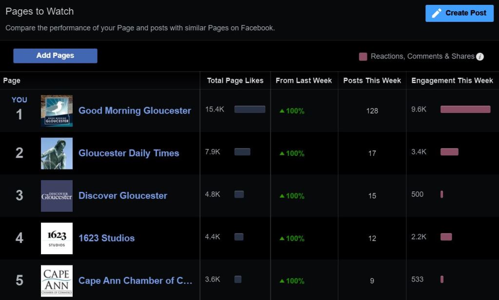 Here are the current Facebook Insights which show how you’re doing in relation to similar media organizations: