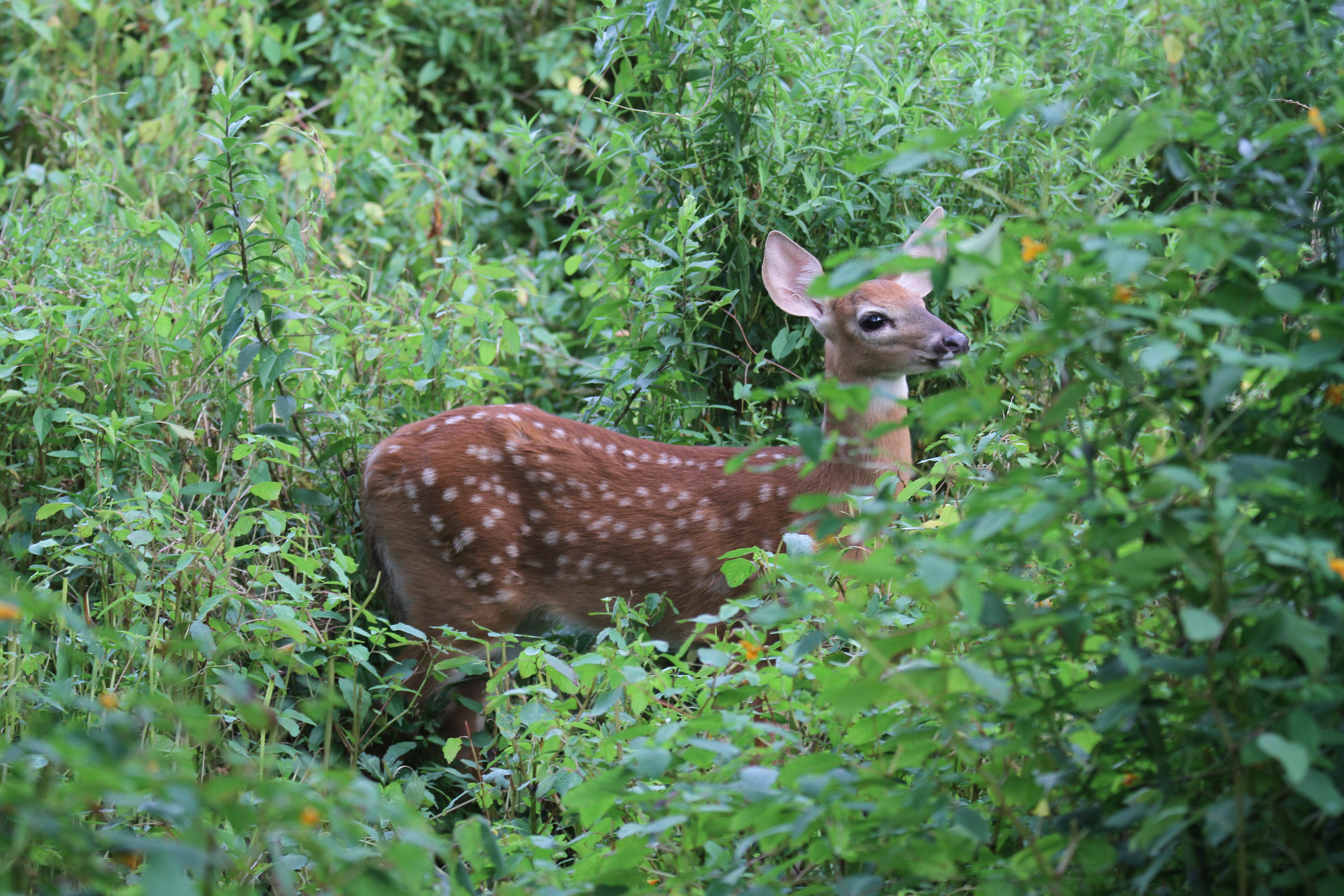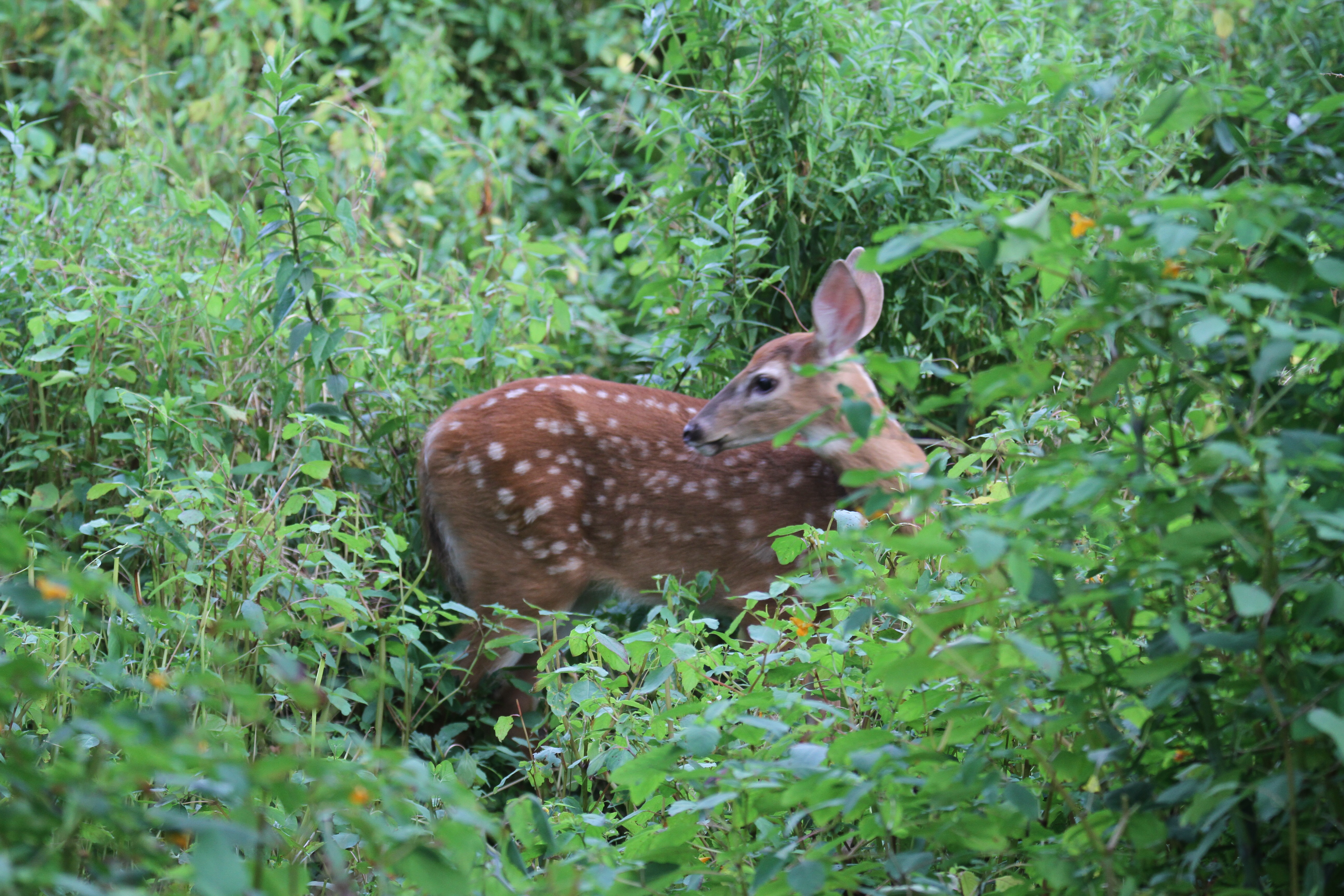 As I have noted previously, we often see deer in the backyard but it is not often that a fawn comes for a visit. It was pretty close but mom wasn’t far away. The light and the greenery and the beautiful fawn coloring were irresistible. We love our neighborhood!