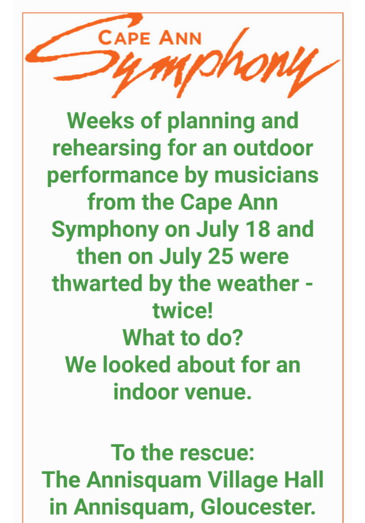 Annisquam Village Hall and Rosemarie Hinkle to the rescue!