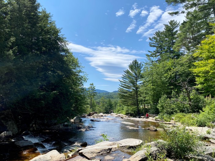 We spent an afternoon hanging out at Jackson Falls in Jackson, NH just outside of Conway the other day. The boys played in the little falls, swam in the small pools, and explored while we enjoyed the gorgeous scenery and relaxed in the sun. While we were up there for a two night camping trip…. I’d do it again for a day trip as well.