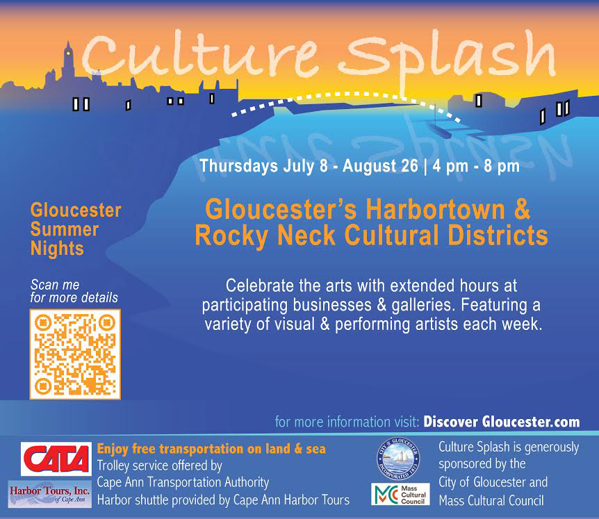 DiscoverGloucester.com features a direct link to the Culture Splash landing page and Google Map to assist you in “making a Splash” with us this summer. We invite you to check out the list of participants, shows and activities, and join us!
