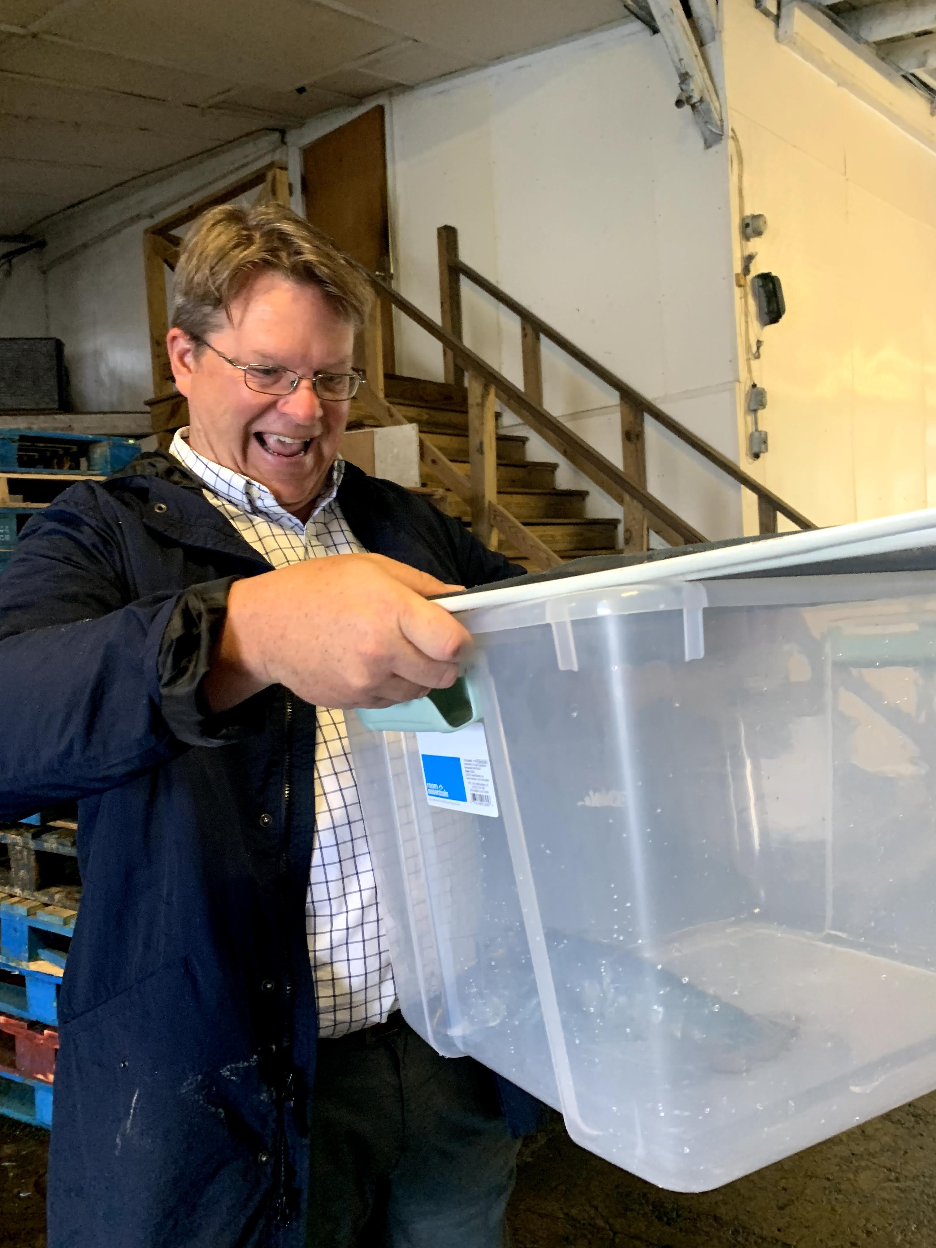 My Buddy Mike Dekoster Picked Up A Blue Lobster That Dave Jewell Caught and Donated To Maritime Gloucester. Also Pics Of Maddie Jewell Then and Now With Blue Lobsters Caught 8 Years Apart
