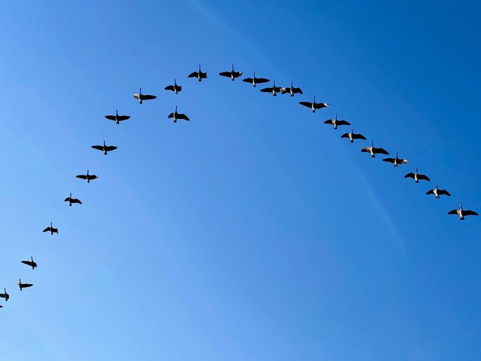 One of these geese seems to have fallen a bit out of formation.