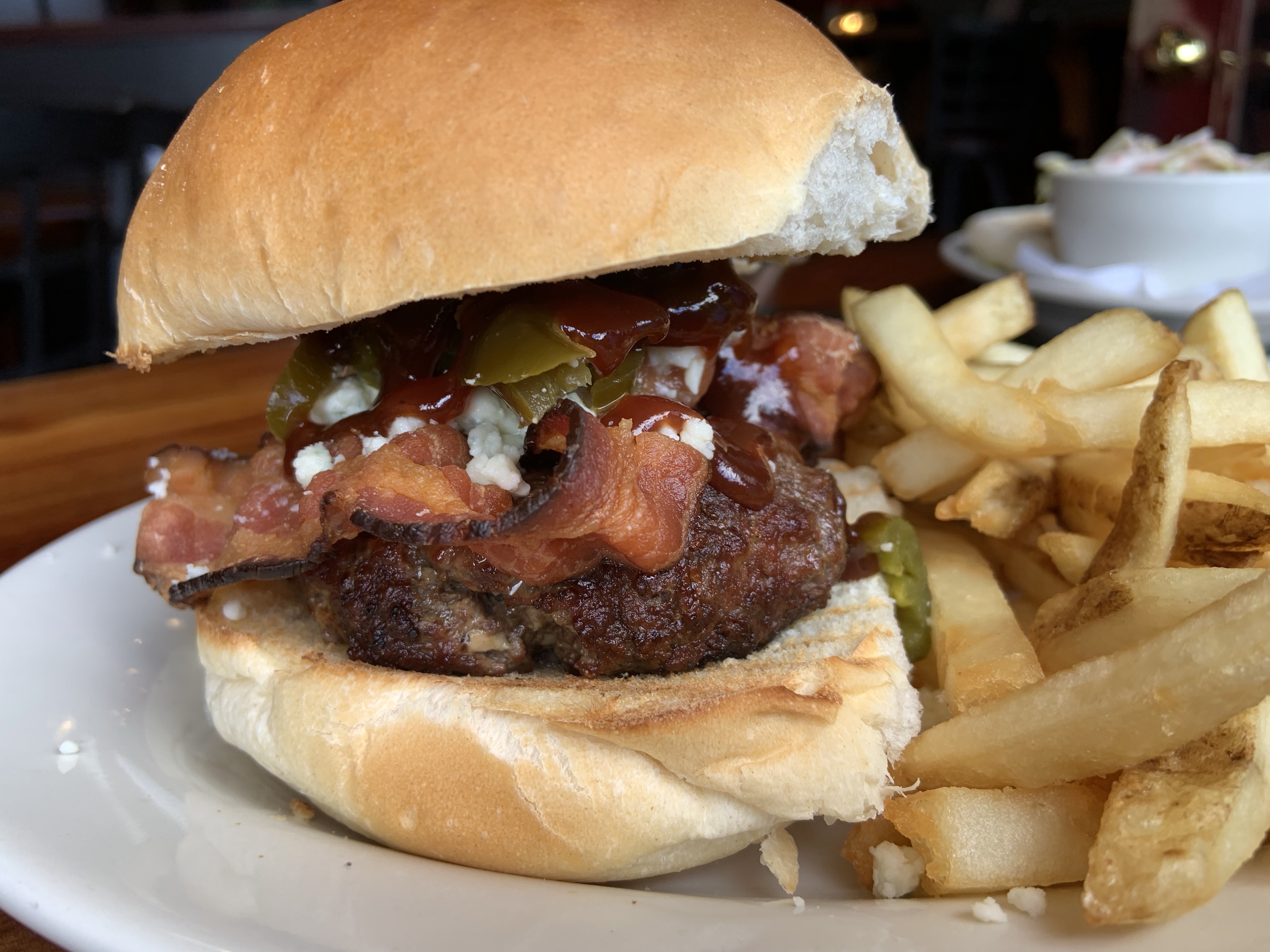 We recently had the chance to stop at Stones Pub on Main Street and check out the new interior changes. The changes include a new side room which is set up with comfortable lounge style seating and a new window open to the street. They also now have outdoor seating available though it wasn’t in use during our visit. We had a great lunch of grilled cheese with tomato and apple and the Southwest Burger. The friendly service remains though the interior is improved. If you haven’t been in a while, I suggest you put Stones in your rotation!