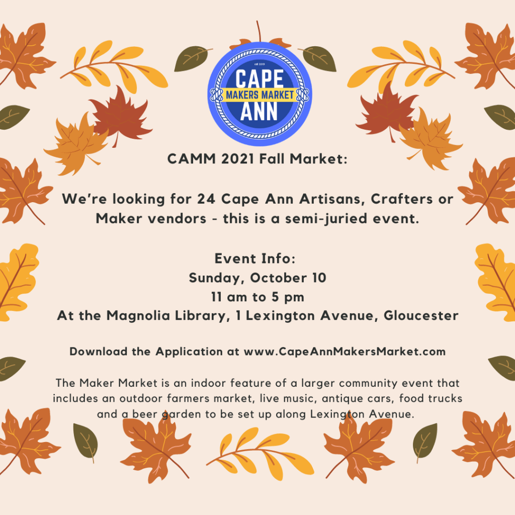 The Cape Ann Artisans will host the 38th Annual Fall Tour for two days, Saturday and Sunday, October 9 & 10th. This will be the third time that the Artisans have hosted the community and visitors in 2021 and each time the artisans have experienced a strong return to experiencing the arts in person. The tour is self-guided and includes 14 unique studios and 15 Artisans covering a wide range of media including ceramic arts, painting, jewelry, mixed media, quilting, mosaics, weaving, and more! For those new to the tour, the two-day period allows plenty of time to visit all or a selection of the studios, but an early start is always recommended to fully enjoy the day and take a break mid-day for lunch.