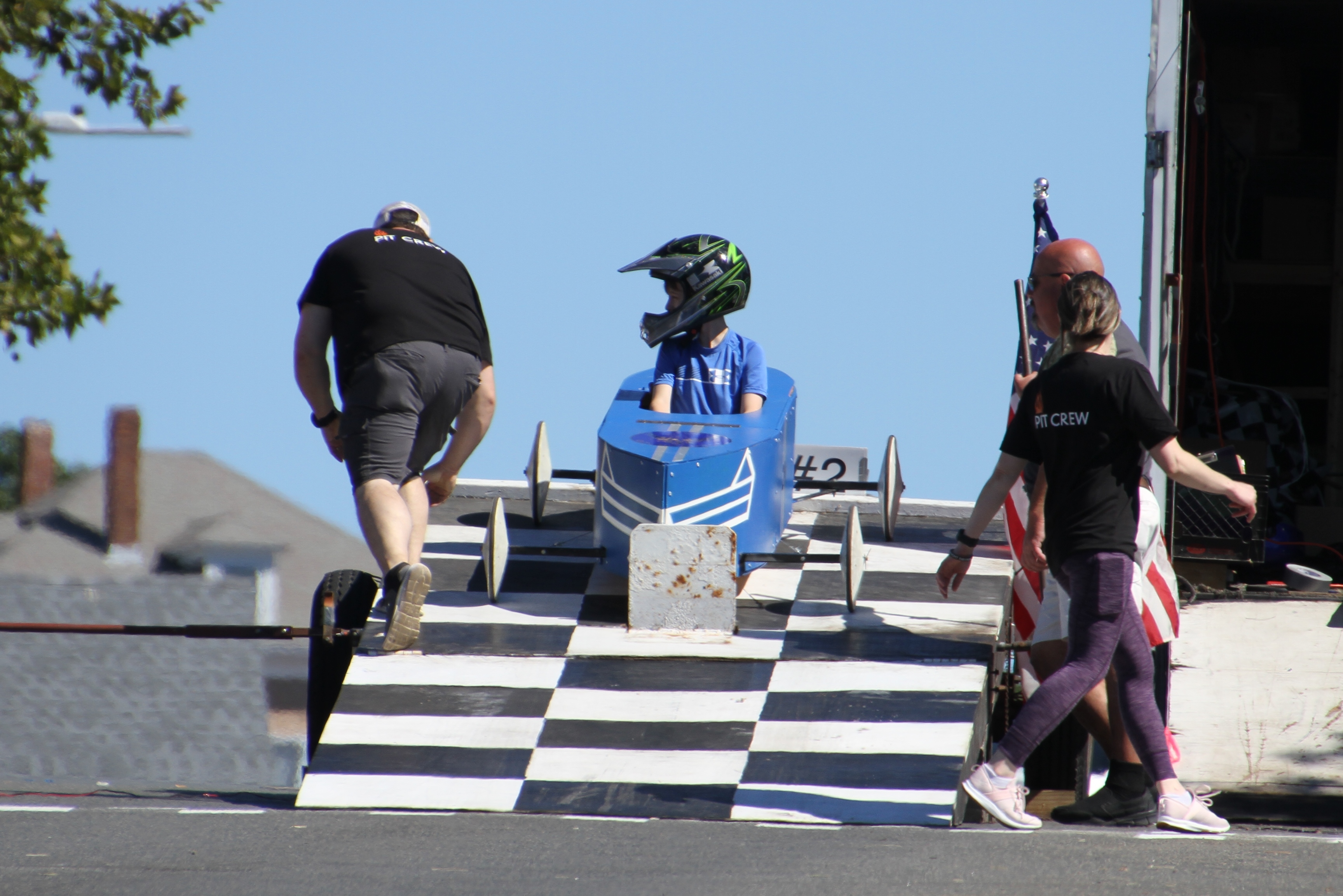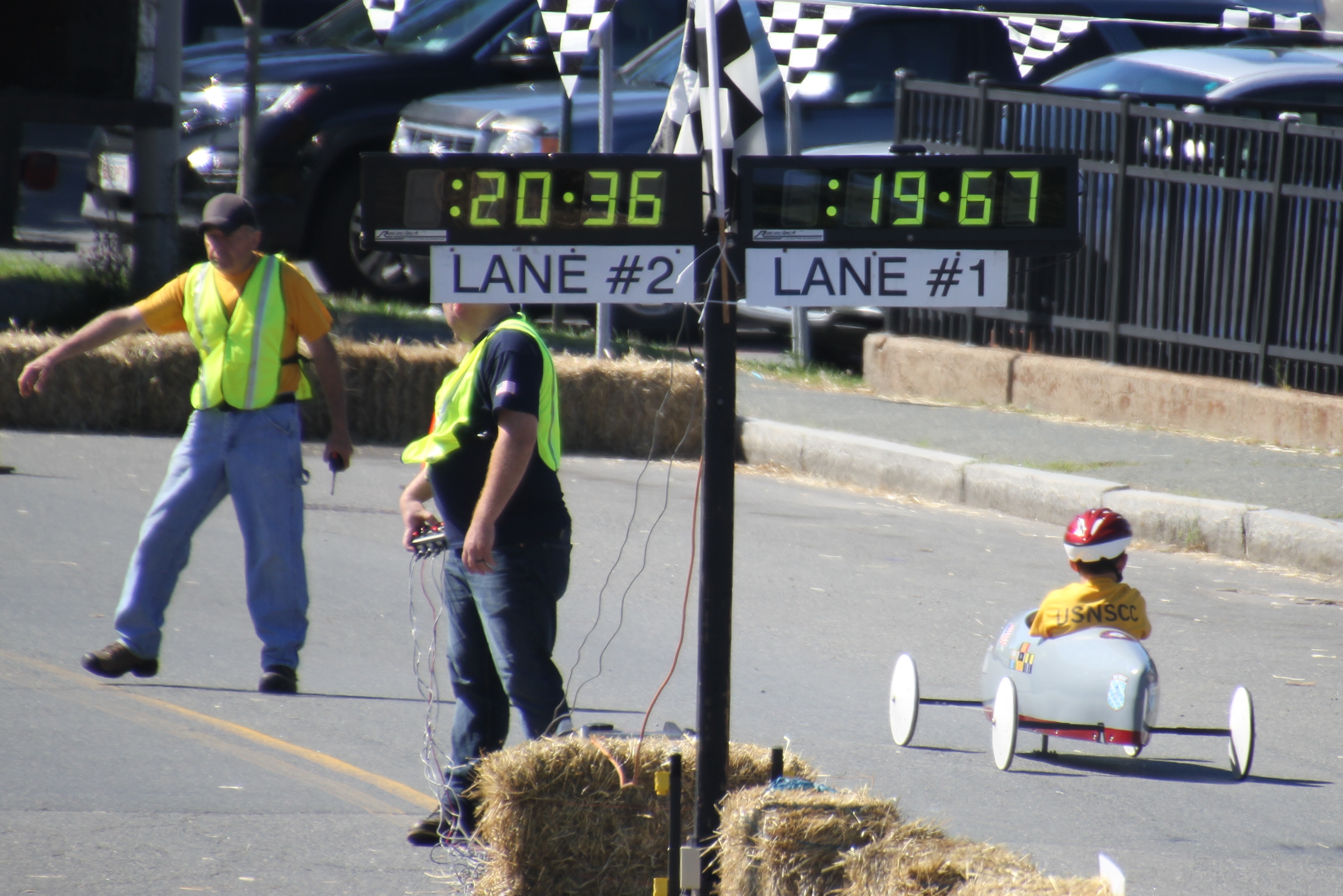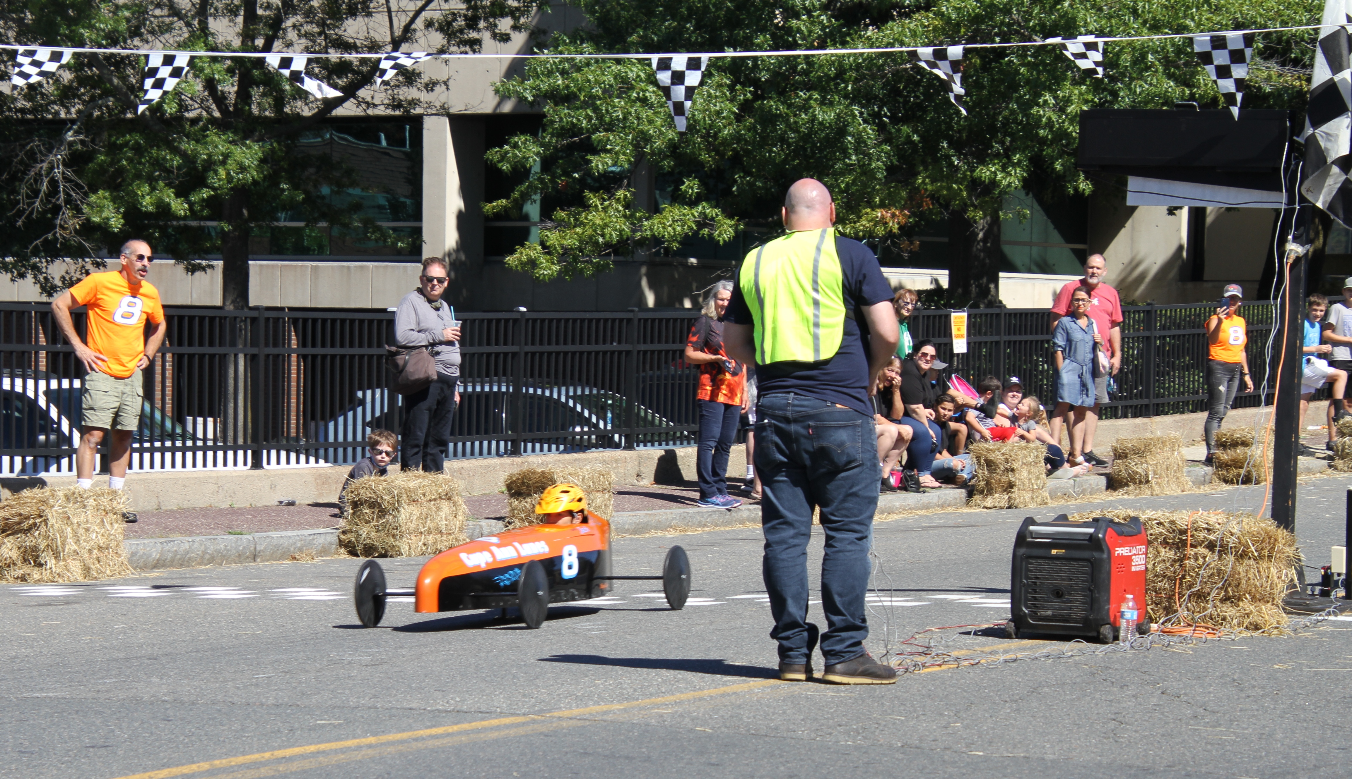 What a fun way to spend a Sunday in September! Congratulations to all the Fish Box Derby contestants, crews, volunteers and families for a great event. Here are some scenes from the racing, the spectators and the volunteers (the unsung heroes being the cadets and crew hauling the cars back up from the finish line). **We understand Master Jack Frontiero in the number 8 car (seen here with team members in the background) is this year’s winner!*