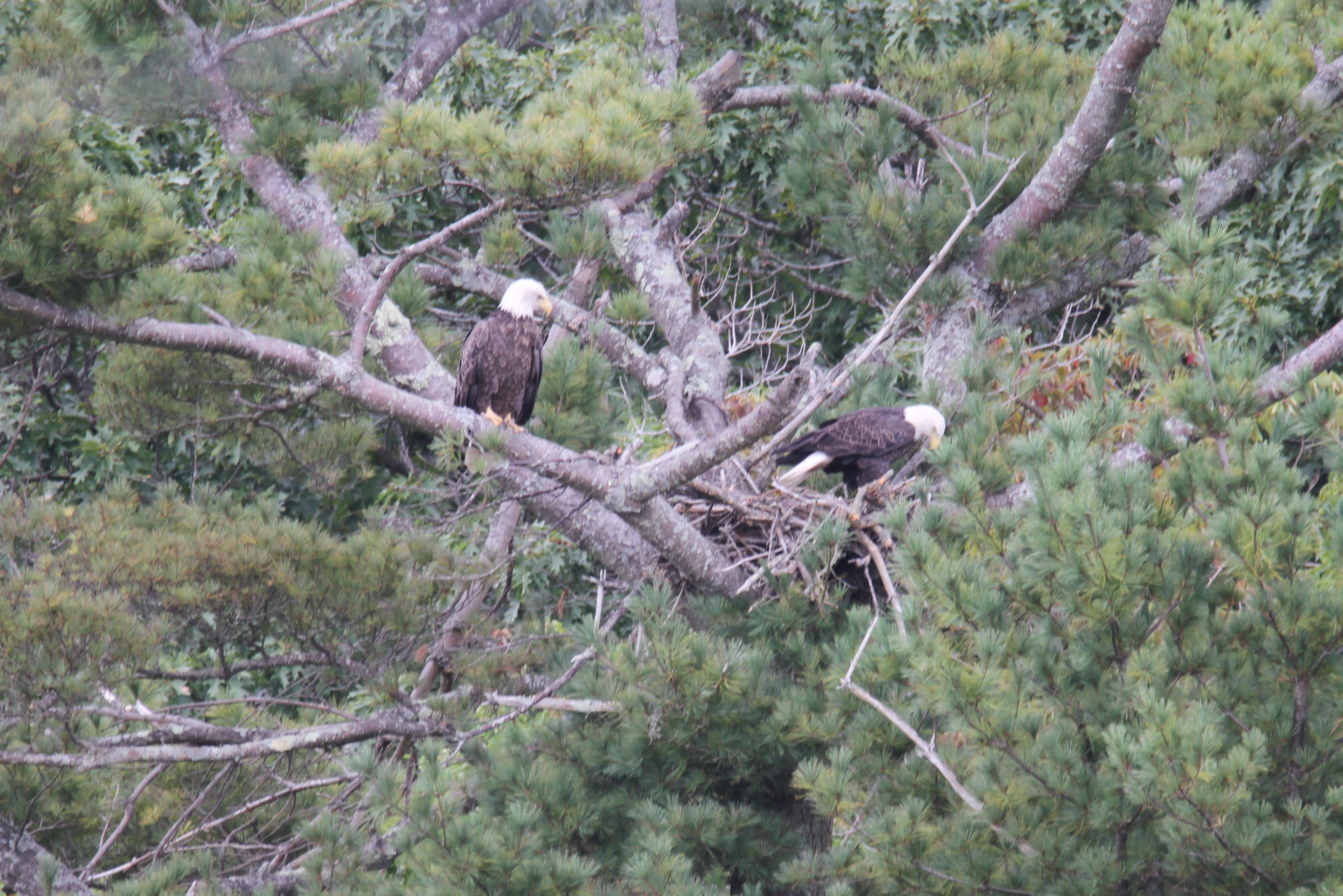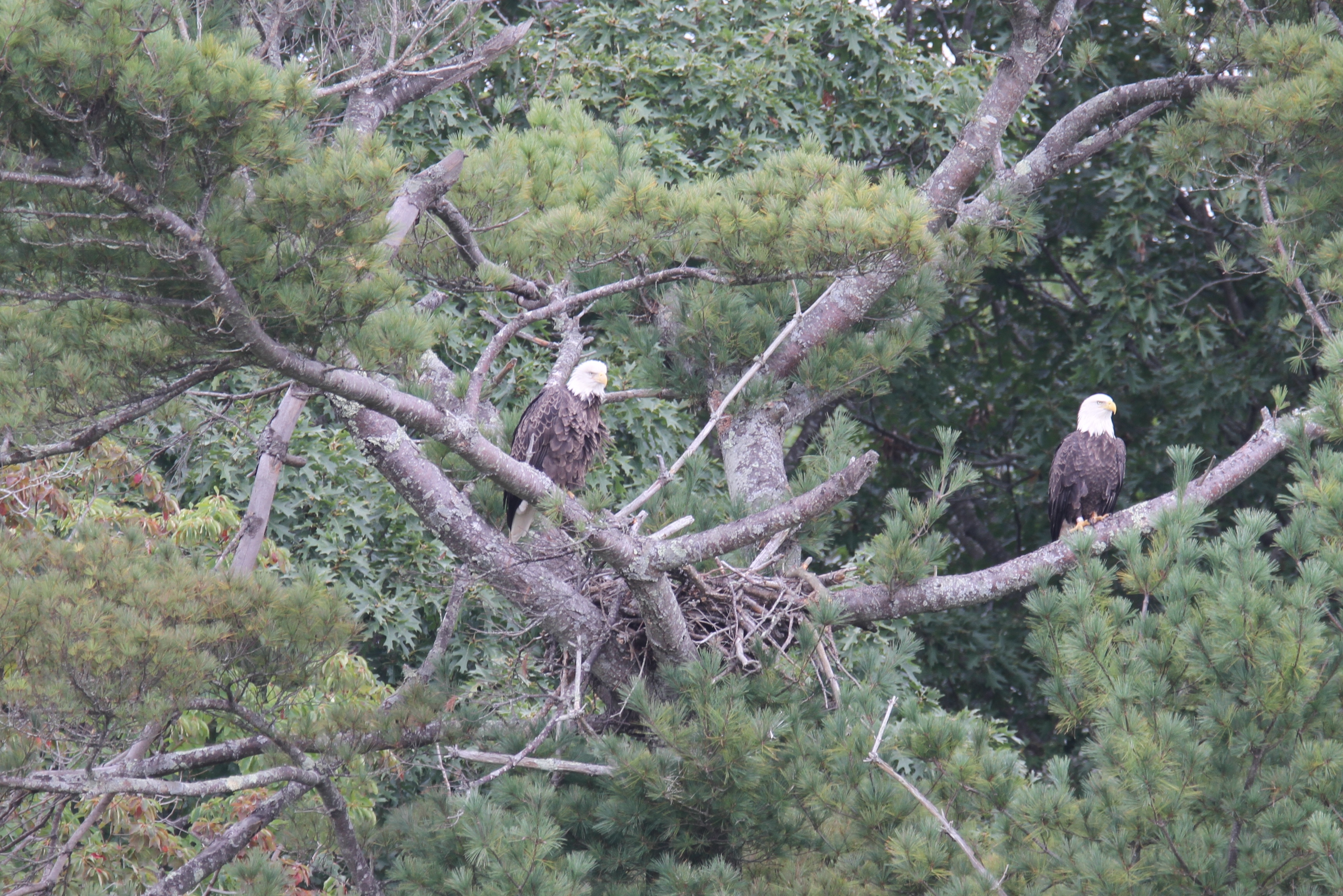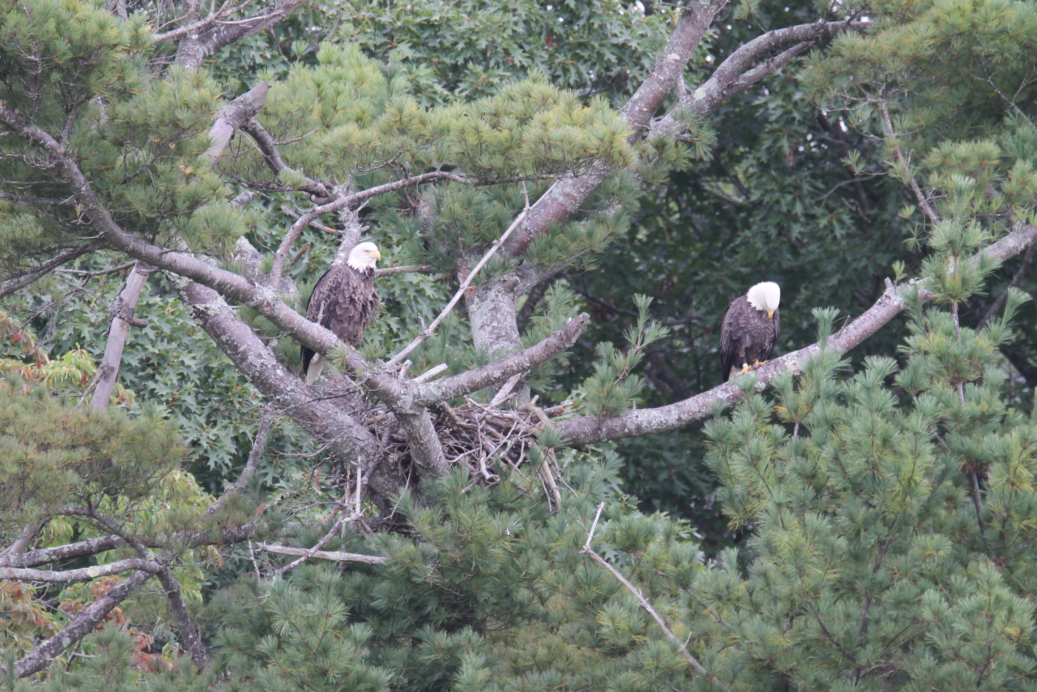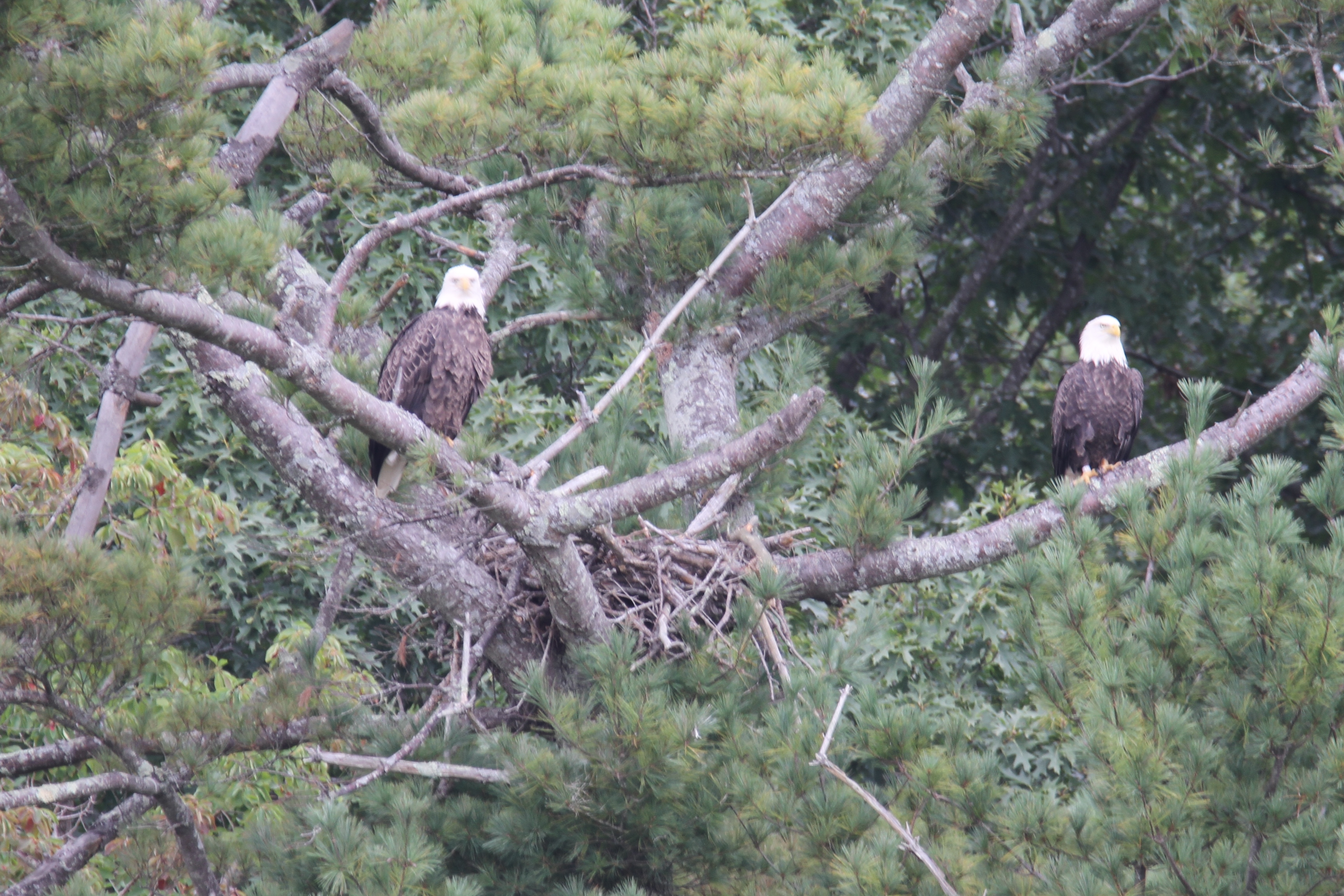 As I posted, we recently saw a young eagle in our nearby “resting tree”. The very next day, we spotted a pair of adults in the “nesting tree”! I believe these to be the same pair we saw last spring in that same nest practicing building skills. I am very happy to see them return! Any sort of eagle sighting is a blessing.