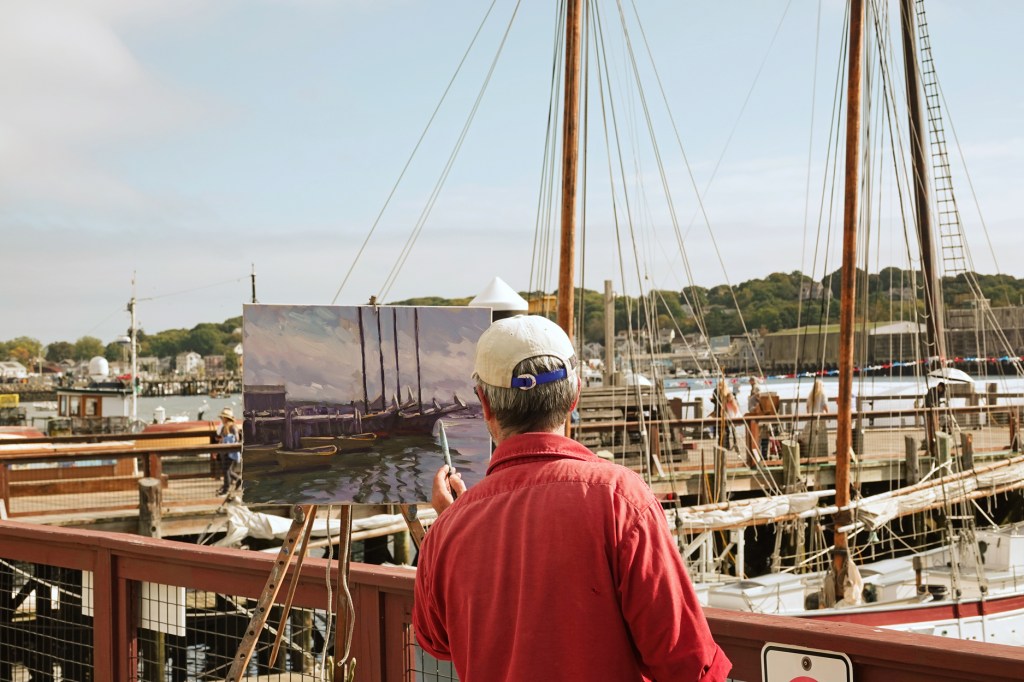 It took place this year on the waterfront at Harbor Loop, and Maritime GloucesterFamiliar sights were visible, like The Paint FactoryRussell and his wife, from South Carolina, stayed with us this yearOur neighbor’s brother was up from MarylandI’m told the ages of the artists spanned from their 20s to their 80sPainters painting together with the statue of Fitz Henry (Hugh) LaneA painter painting the painters painting with FitzAfter the 2 hours, the artists framed their paintings and set them up for viewingWith hope for a sale, which is more frequent with ever increasing CAPA popularityAt the Gala, which capped off the the week of competition, Johnathan McPhillips took top honors