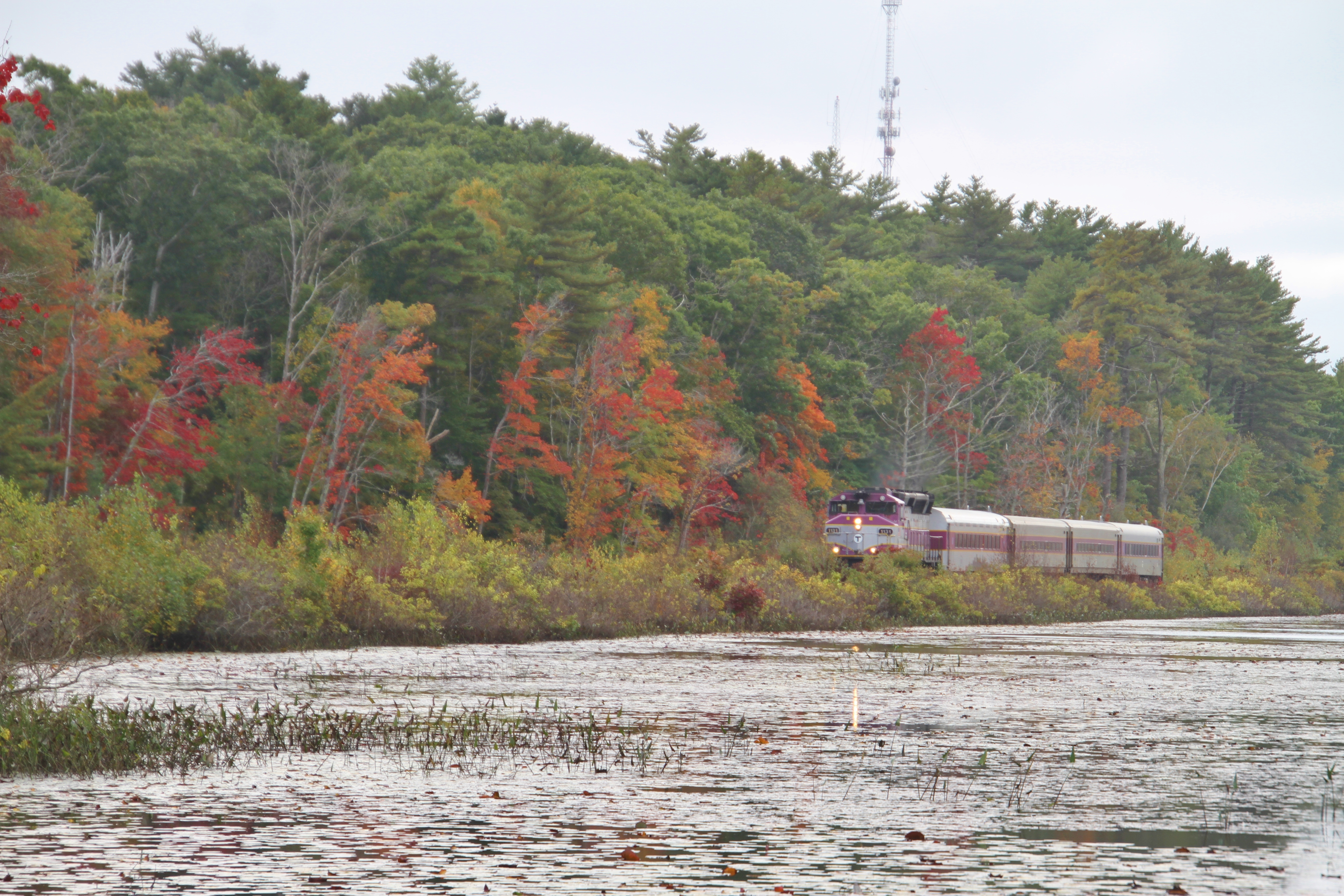 I was hoping for some spectacular fall color the other day and we didn’t exactly get that yet, but we did enjoy the beauty and the quiet at Lily Pond. It was a little bit gray that day with the sun only peeking out here and there. We were surprised to see a train riding the rails though! Bonus shots. Always a good thing when you are seeking daily content!