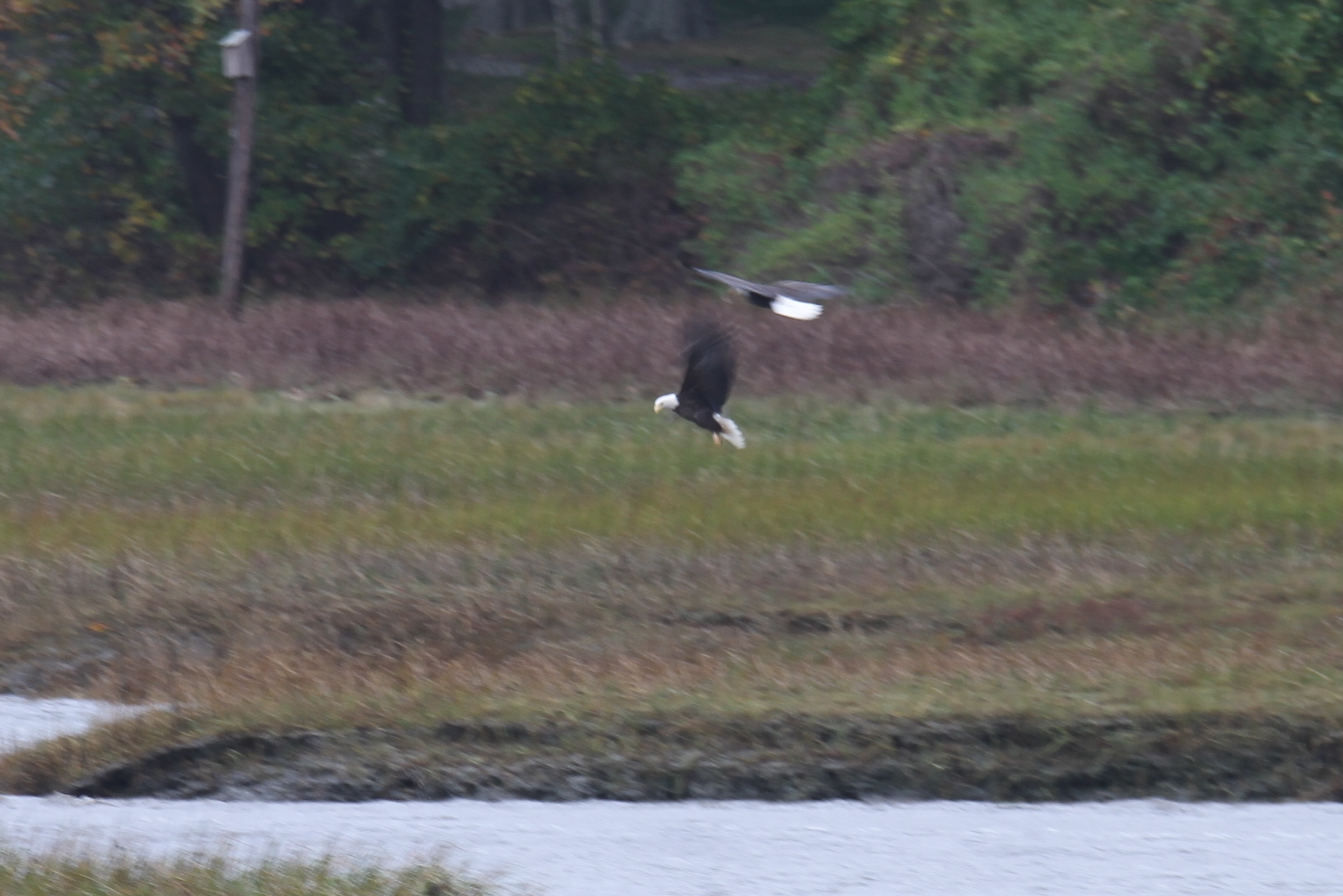 It was wonderful to see an eagle pair return to Magnolia just after the recent storm passed. It felt as if they were checking up on how we were doing. The conditions weren’t ideal for photos or for flight but they put on quite a show for us. I suspect this is the same eagle pair we have seen over the marsh in the recent past. Regardless, it brightened by day without power by quite a bit.