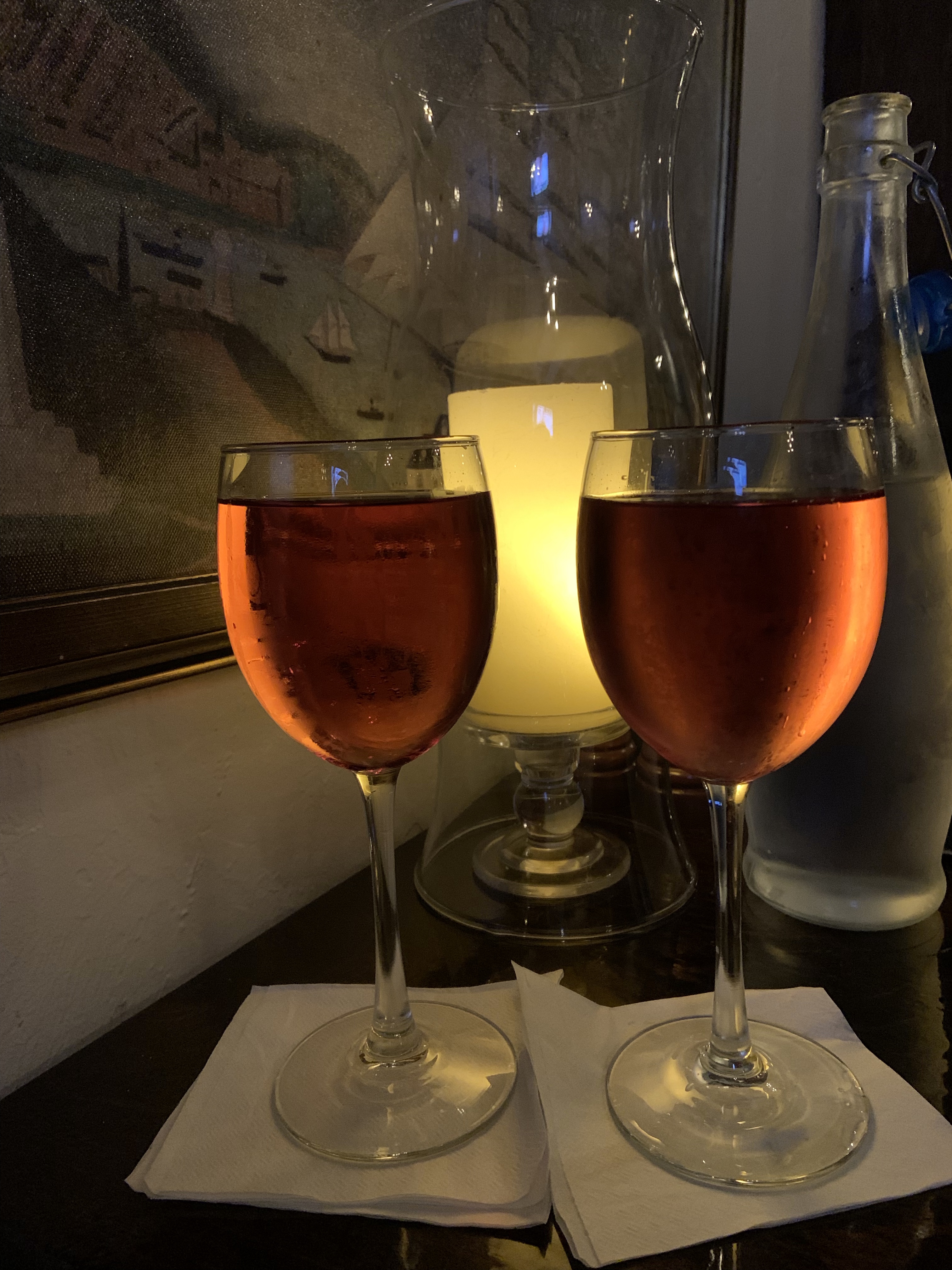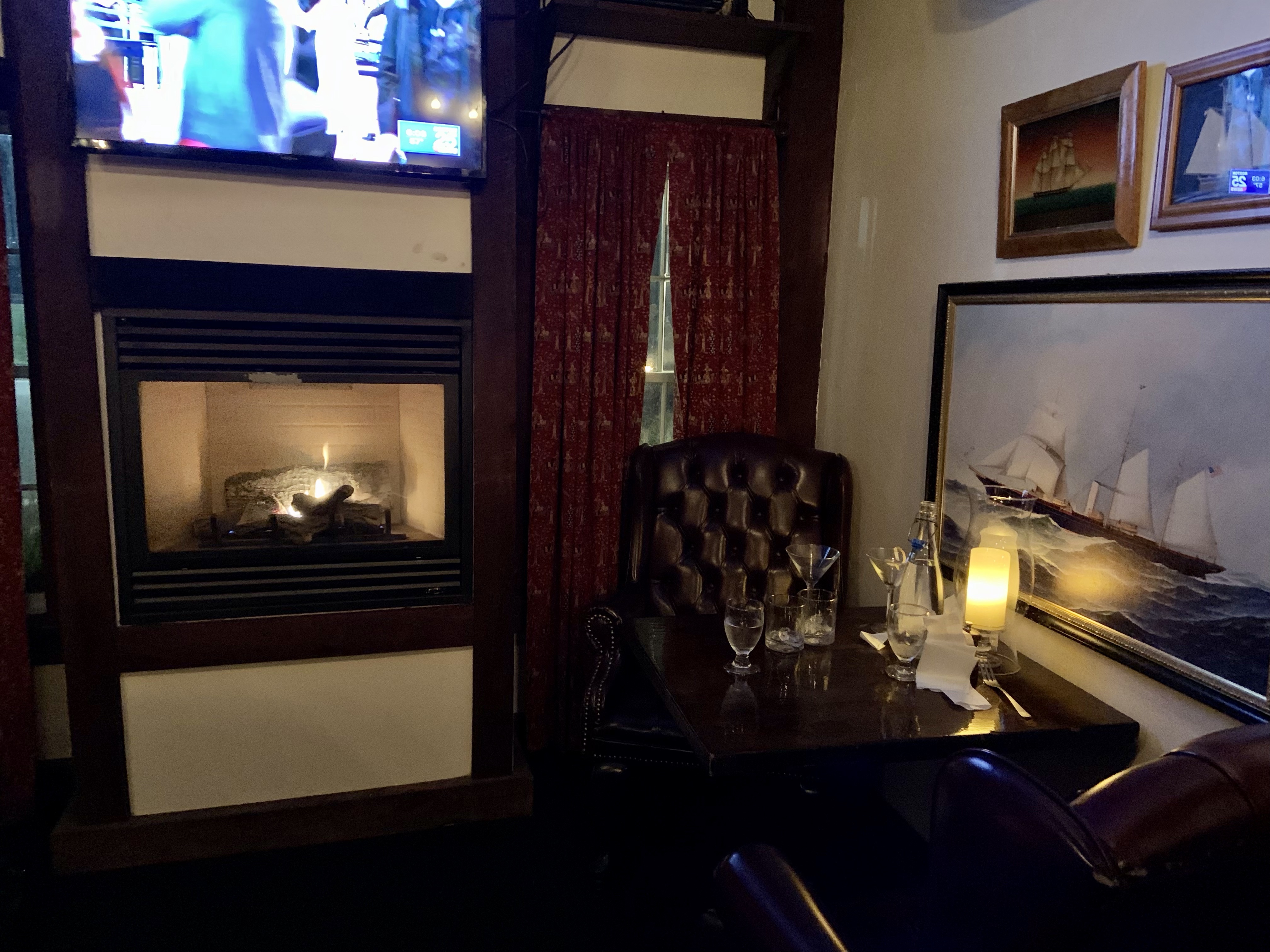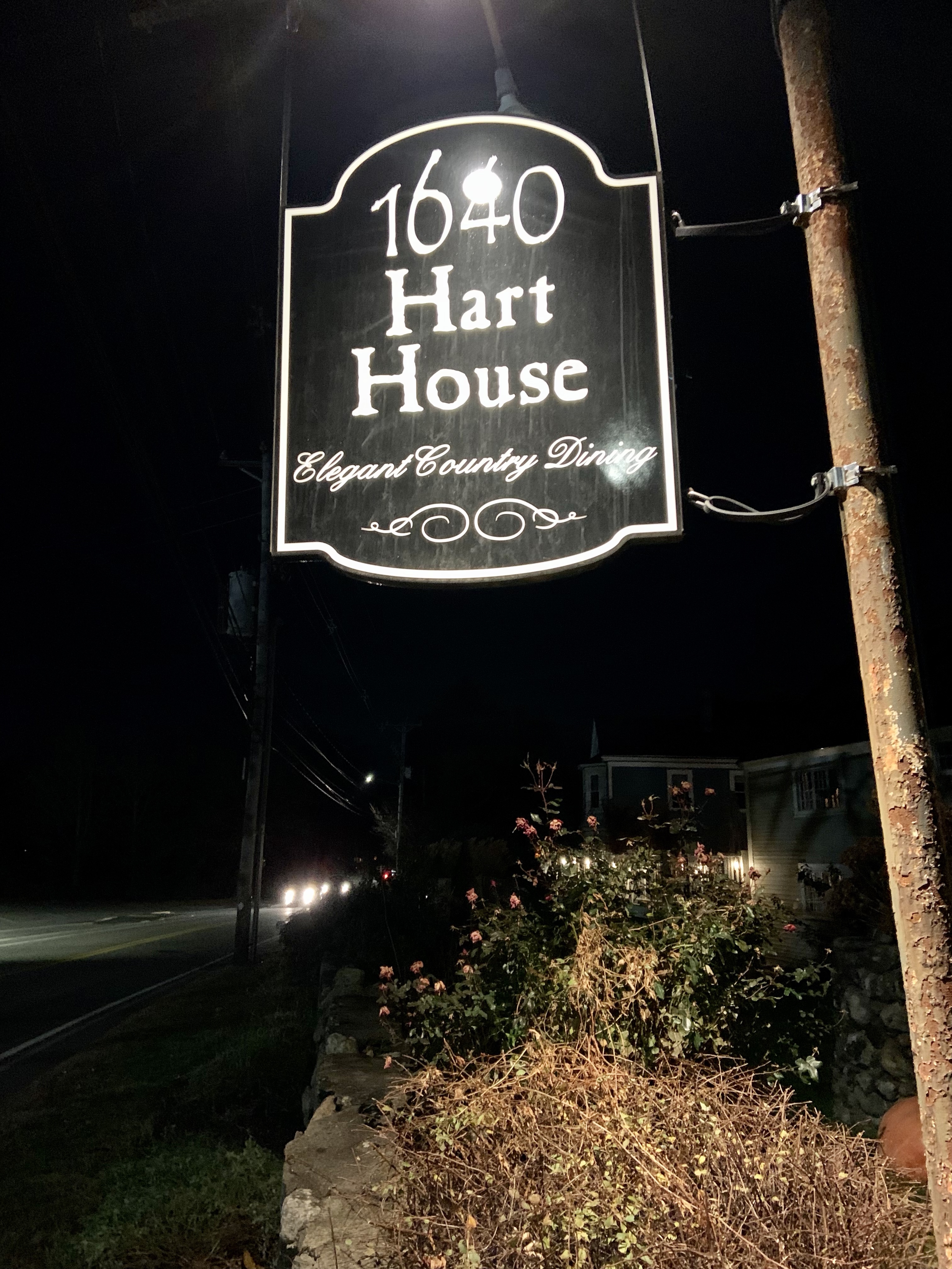Thanks to Mark Ring for suggesting the 1640 Hart House in Ipswich! We had dinner there recently and left there saying to ourselves: “Well, that was fun!”. It advertises itself as featuring Elegant Country Dining, but don’t let that intimidate you as it did me at first. It’s apparently an old home made into a restaurant so the seating can be in any of several rooms. The room we were in included a bar and a fireplace, dark wood beams and comfy big chairs. You can see from the pictures that it was a bit dark in the room (you might want to bring some extra lighting along if you are of a certain age……) but this did not deter from the enjoyment of the atmosphere and food.