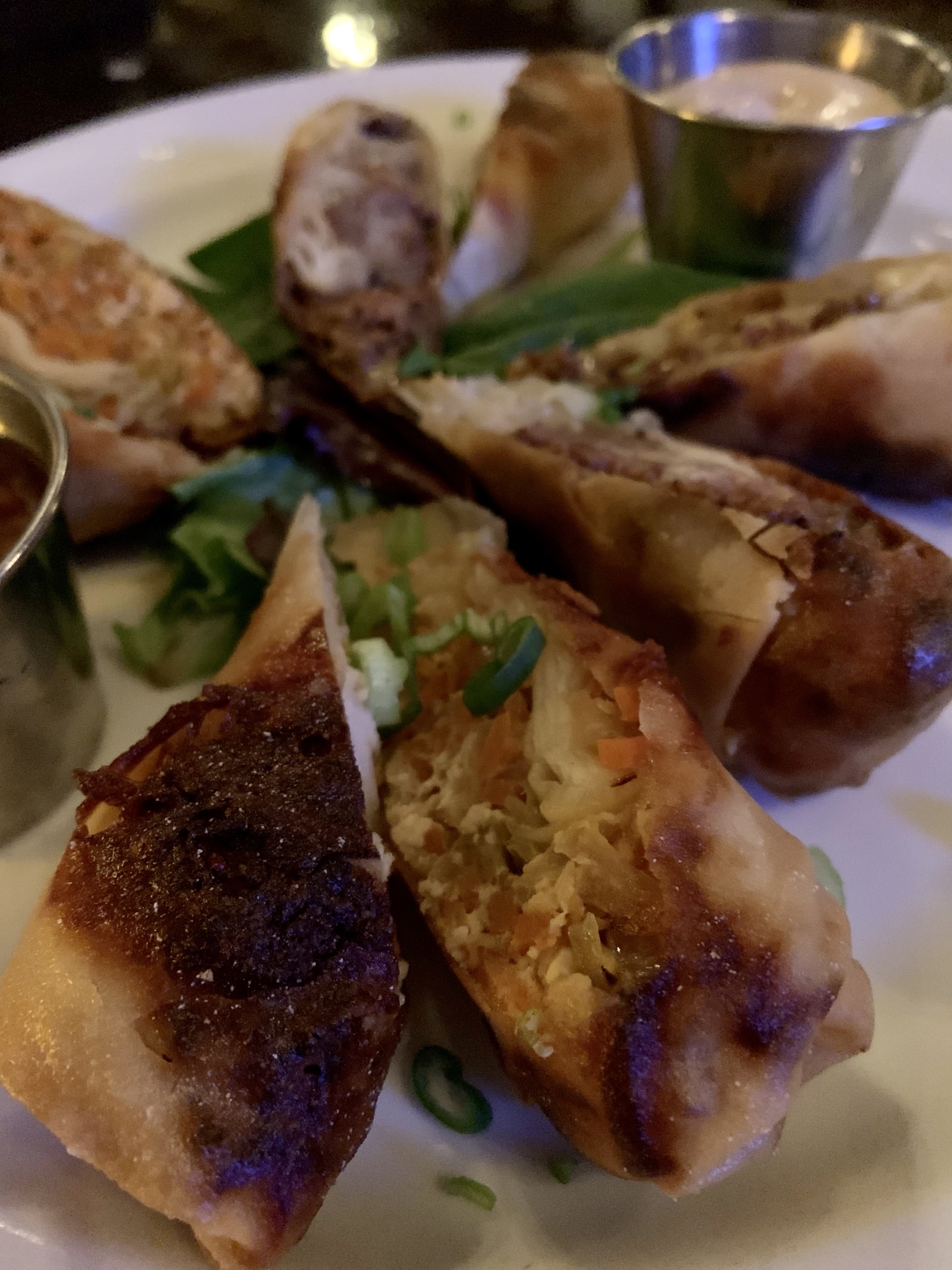 Jim had the Hart House chicken and I treated myself to the Grilled Tenderloin. The spring roll appetizer was especially delicious. The pace is relaxed and efficient. The food was done to perfection and the service was friendly and “just right”. Reservations are highly recommended and we plan to return someday.