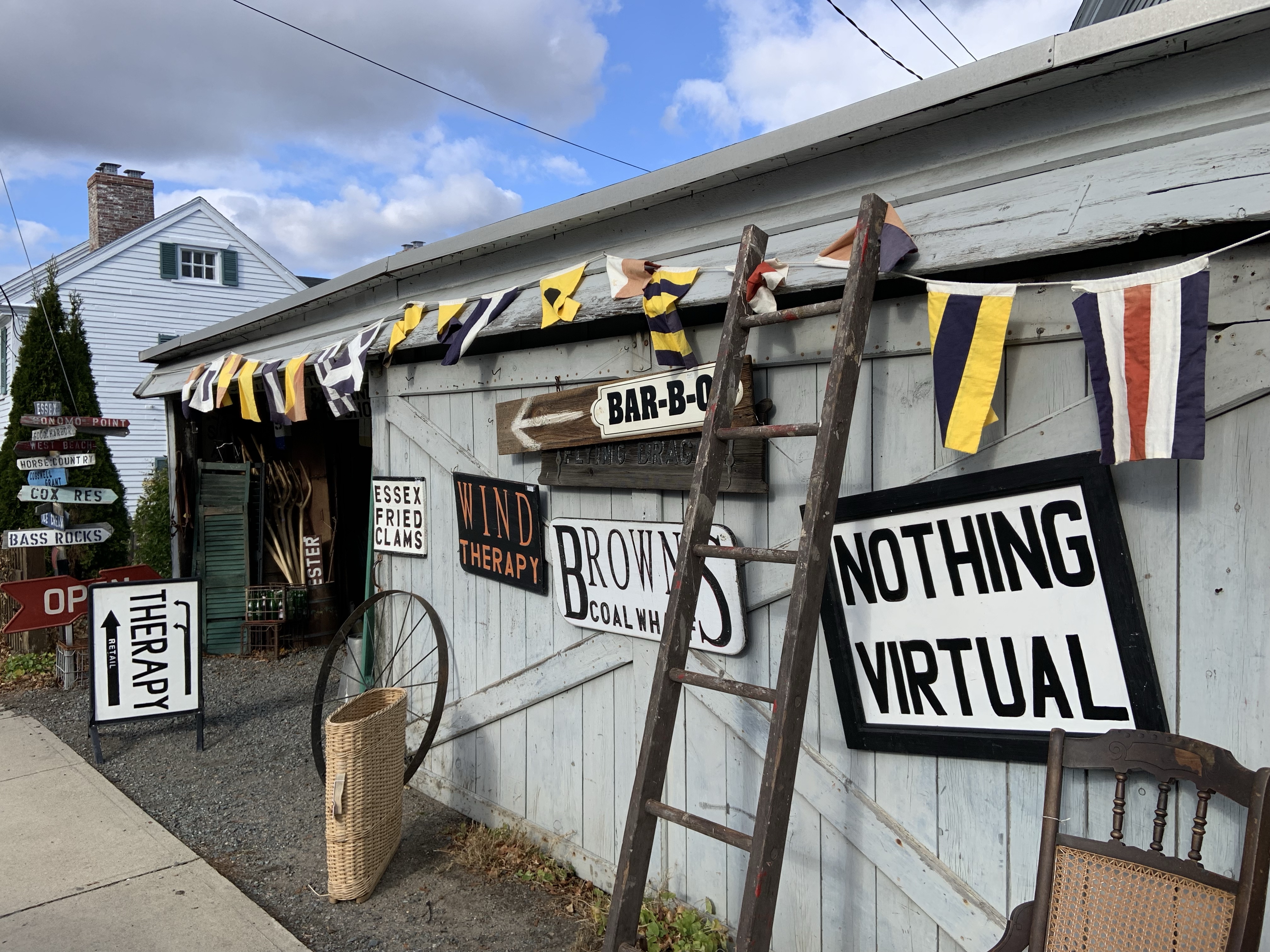 We like to stop by the Flying Dragon in Essex and just browse around the store for interesting items. This time we bought some old but functional and decorative salt and pepper shakers. There’s always a great deal to look at here at Flying Dragon. Don’t forget to check out the little barn along the side! And the signage in the front window changes to reflect the goings-on, so that’s always something to watch for.
