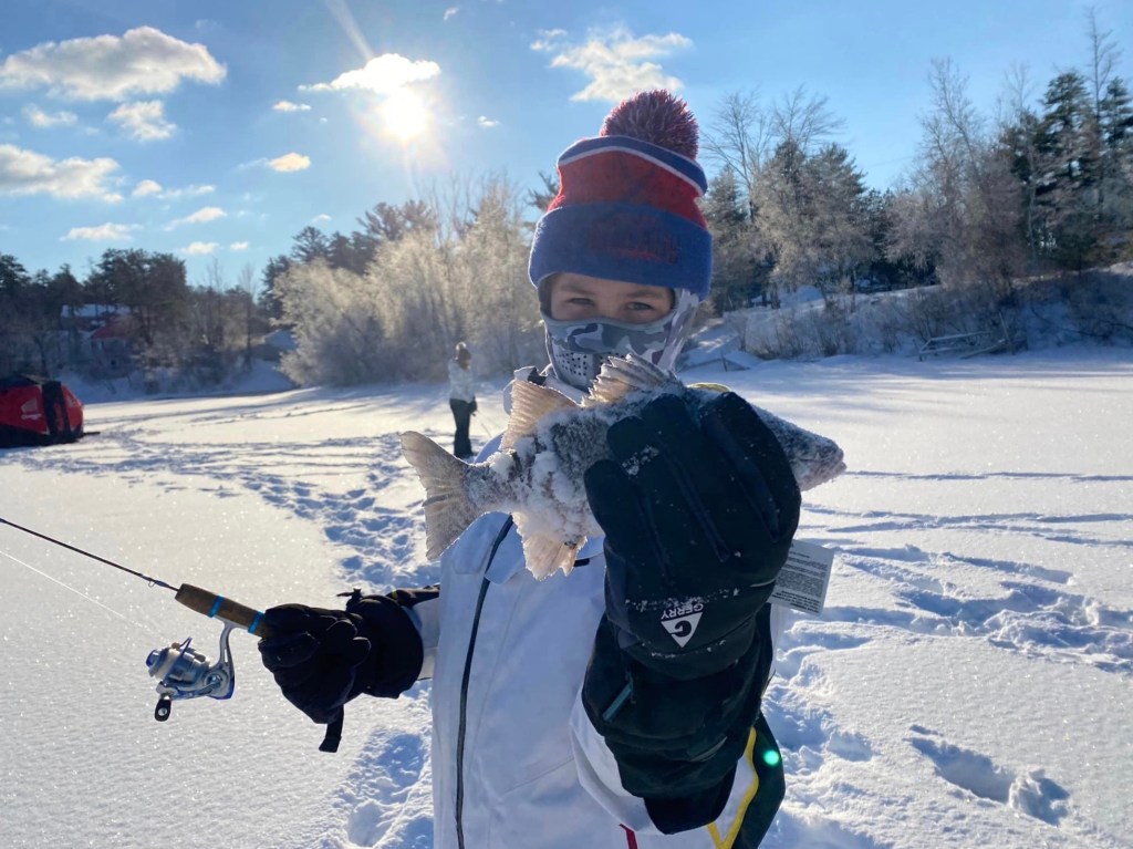 We woke up super early on Sunday morning to drive up to Freedom, NH to meet up with the Fish Nerds Guide Service (https://www.facebook.com/FishNerdsGuideService/) for a morning of ice fishing. If you’re looking for a relaxing outdoor activity, in the crisp fresh air, with good people and a beautiful view, this is it. I highly recommend Fish Nerds (who also have a podcast (check out HERE: https://www.podpage.com/fish-nerds-fishing-podcast-1/ ). We’ve spent the day with Clay and Vinnie twice now and have loved it both times. We arrived right at 7:00 a.m. and everything was set and ready to go. A warming tent is available if you’d like, all gear and tackle is ready, and a delicious warm breakfast is prepared right on a skillet on the ice half way through the morning to help warm up for the second half.