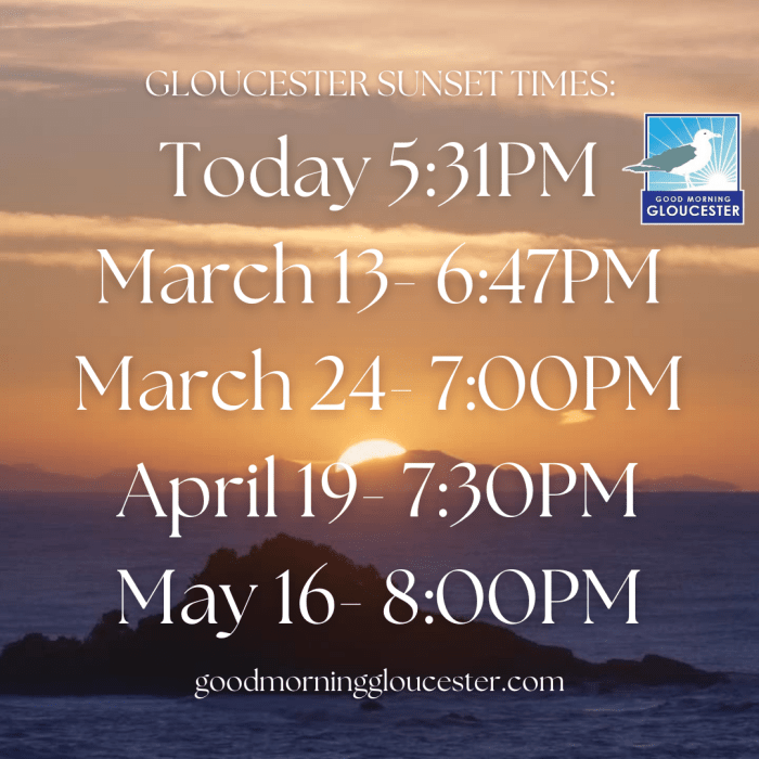Gloucester Sunset Times www.goodmorninggloucester.com