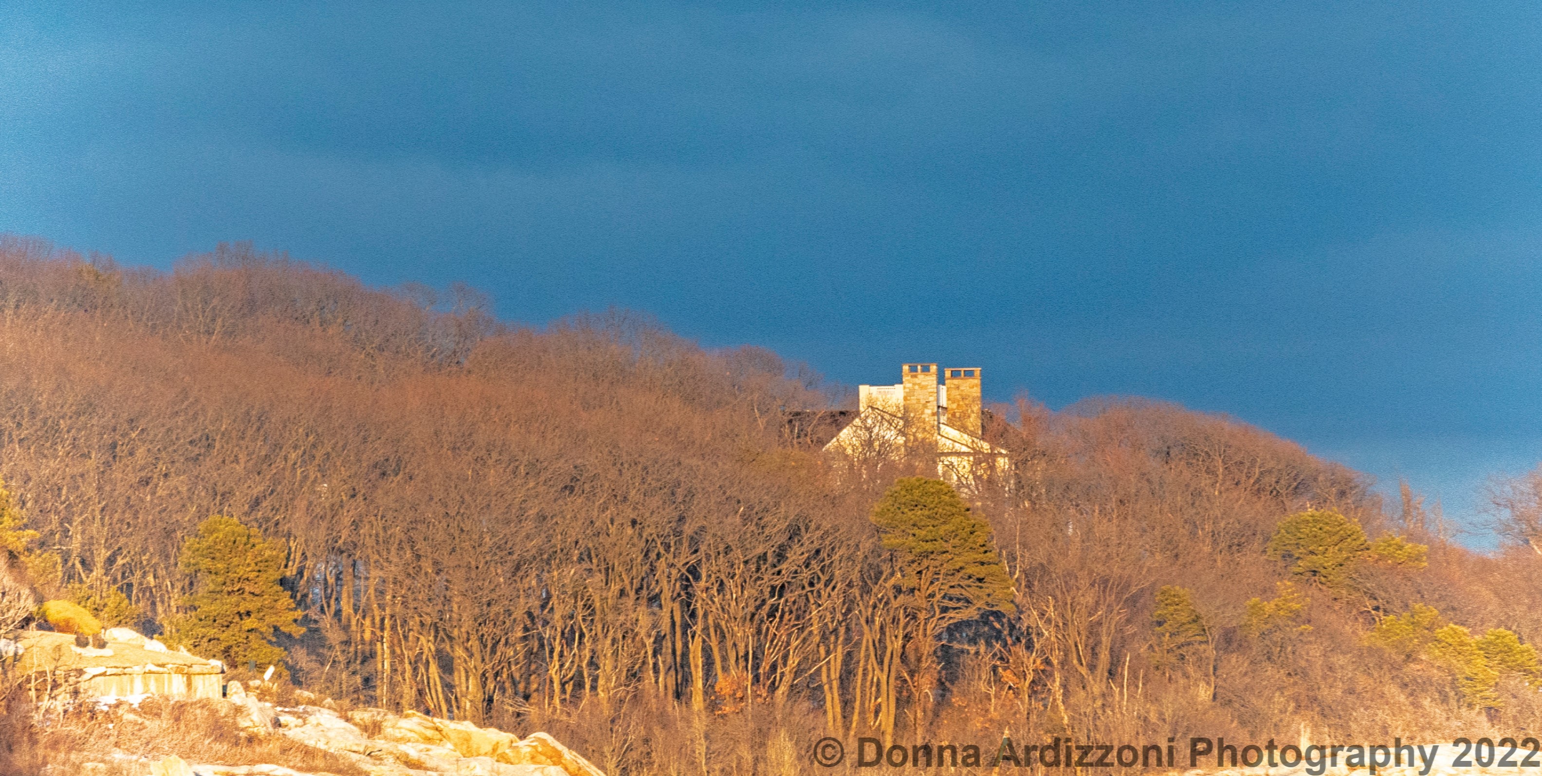 When walking Shore road this week, Rafe’s Chasm was shining with blue skies and a lone house in the woods.
