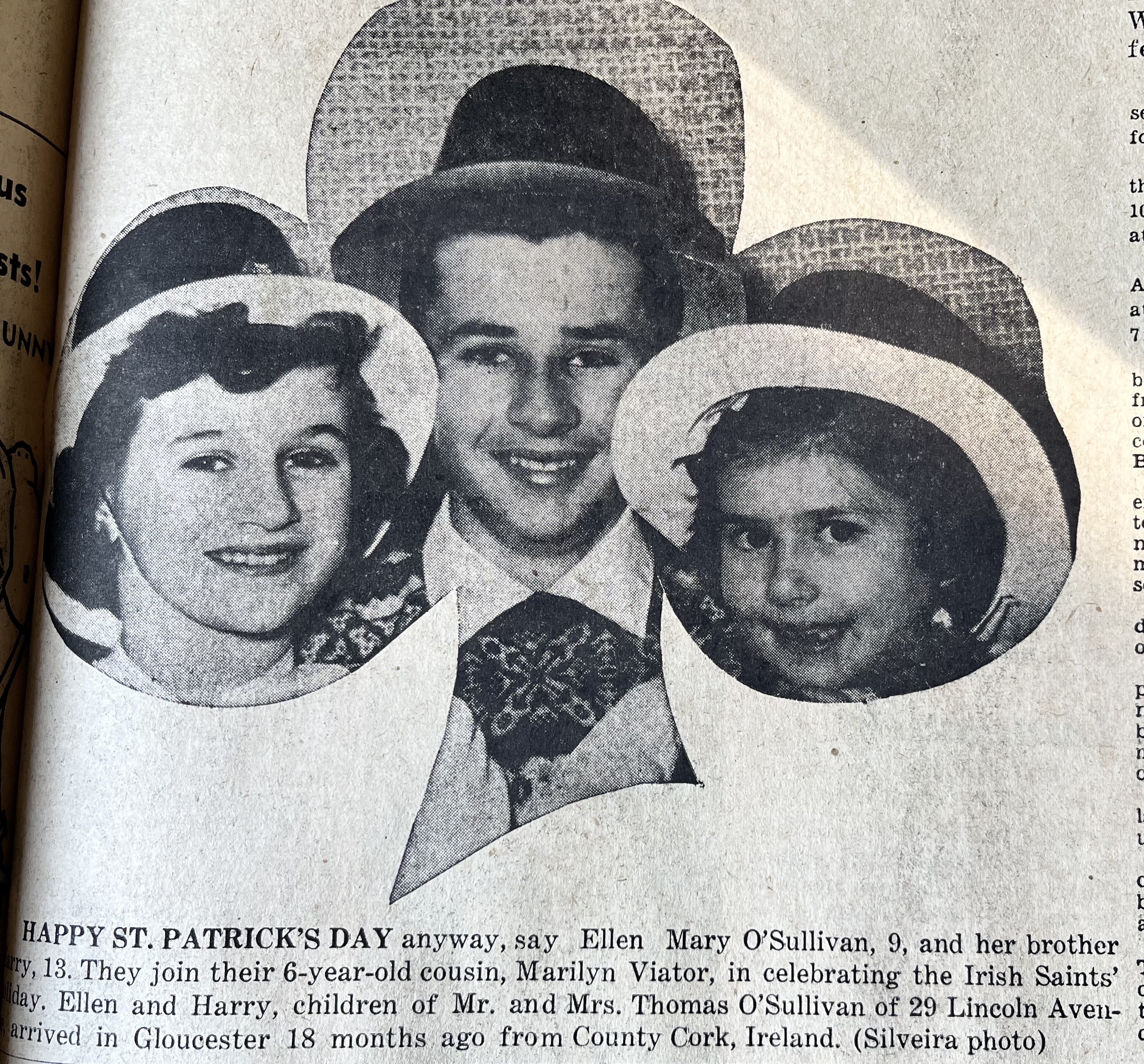 1956 saw Gloucester covered in snow for St. Patrick’s Day. These are a sample of some of the items in the Gloucester Daily Times that day, with one notable exception to remind you to always be searching for that pot o’ gold!
