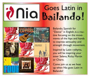 This is a great, semi original Nia routine, to the beat of Latin music. Of course I have substituted in a few other pieces of music as I am want to do. All about the hips and shoulders. Come join us and find your inner Charrrrrro!