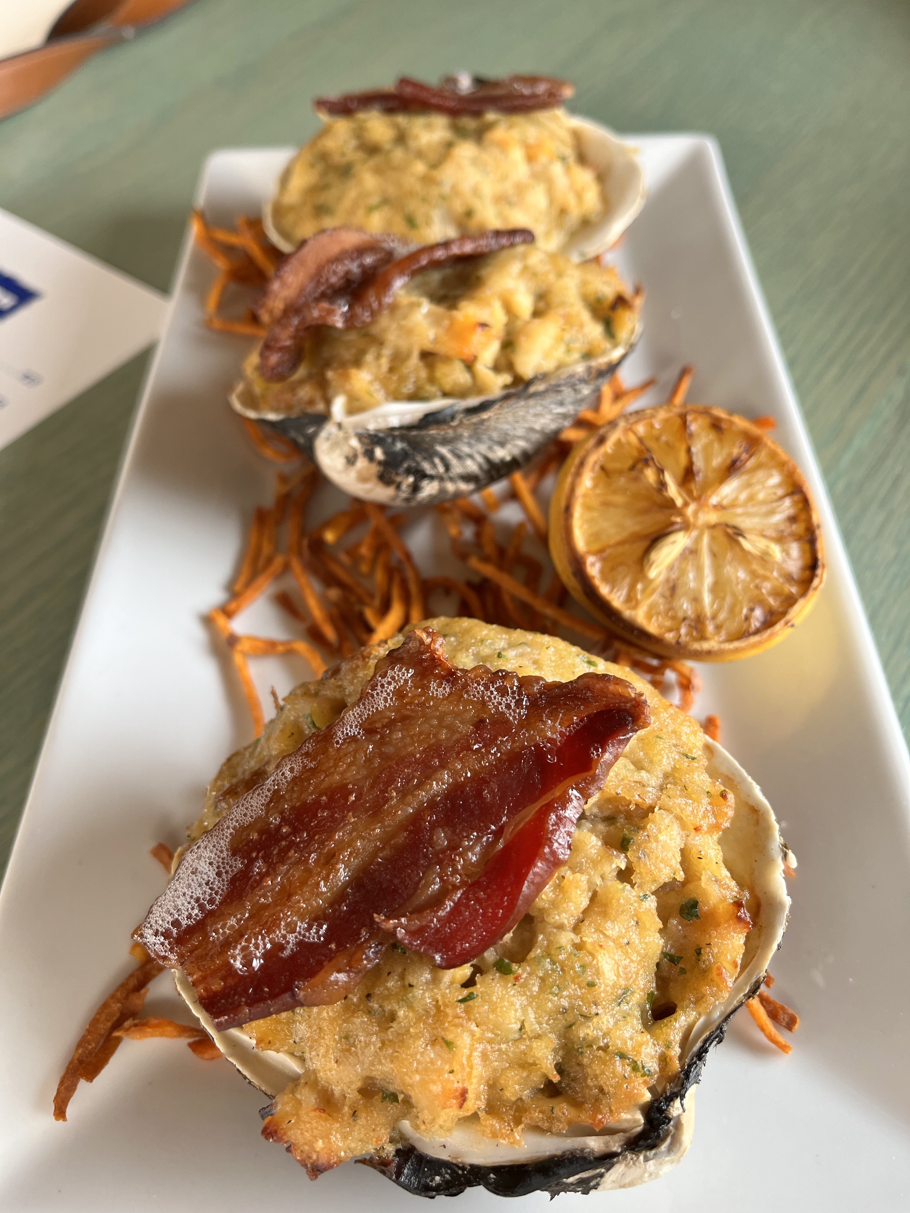 We skirted the Essex bridge traffic and landed at Ripple on the Water for lunch recently and it was outstanding! Again….! I have said it before but it bears repeating as the spring and summer season approaches….excellent food and service at Ripple on the Water on Main St. in Essex. Shout out to our server Hillary, Rachel and Michelle. Jim had the clam chowder and shrimp tacos. I had something new for me: pig wings and they were amazing! I’ll be getting those again for sure. A key lime tart for dessert just made a great meal even better. I usually do not get dessert, but Michelle makes them too tempting to resist. Thanks, Ripple!
