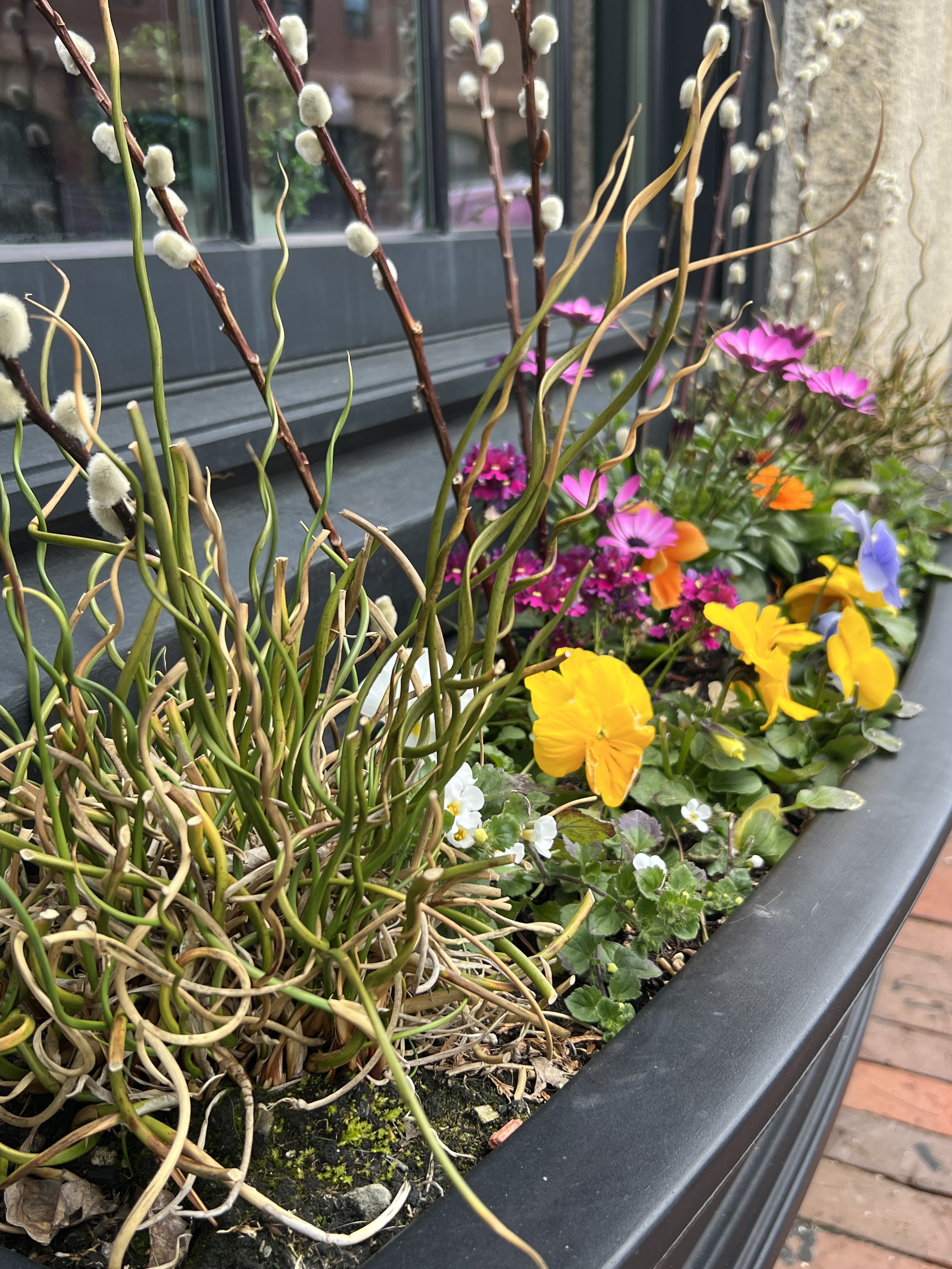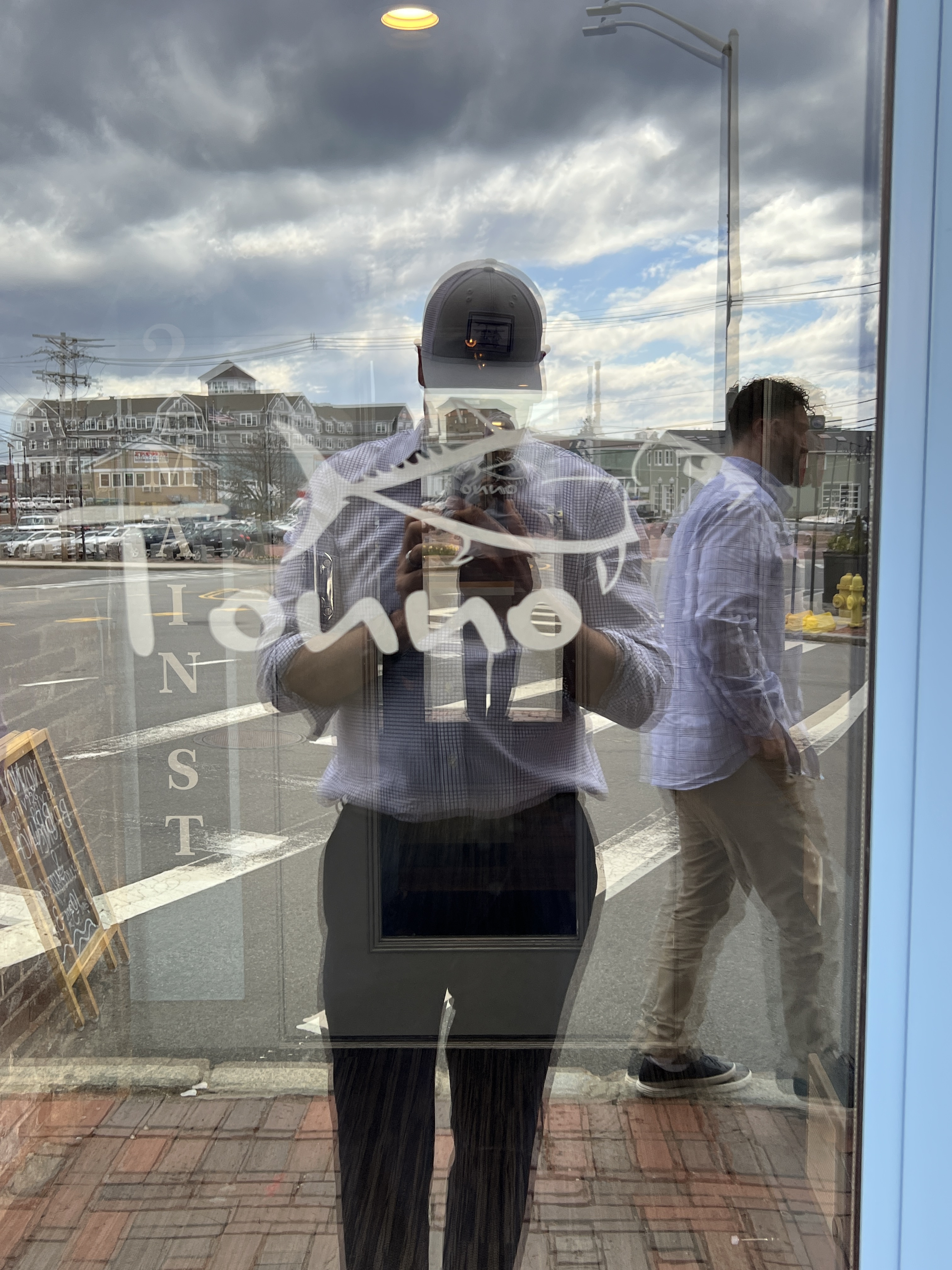 What’s it like here today? A bright and chilly Sunday, about 39°, meant hats and warmer coats for daybreak walkers. Gig rowers were pulling a fast clip in the harbor. Shorebirds and tracks were absent from the beach. Seagulls and robins were in the streets thanks to a night of heavy rains flooding out earthworms.