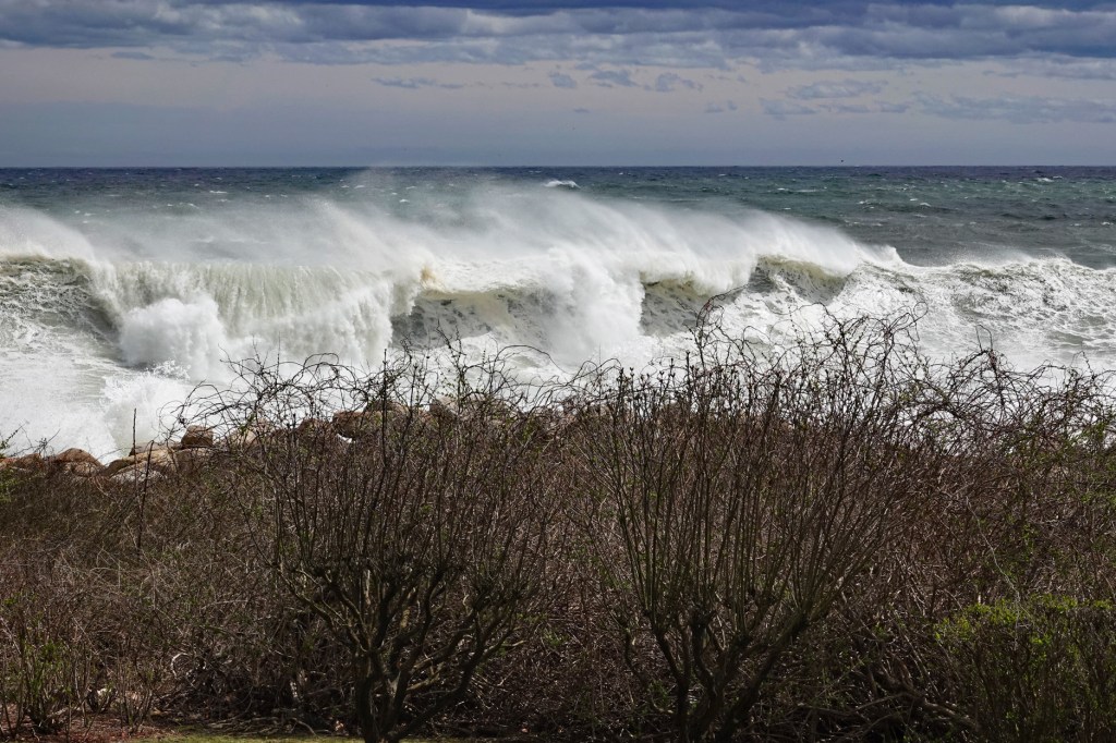 After big rain and wind storm Monday evening and Tuesday, Wednesday’s sunny morning shines on Generous Gardeners beds along Stacy Boulevard. Tulips are rising. Pansies and daffodils showing. Go!