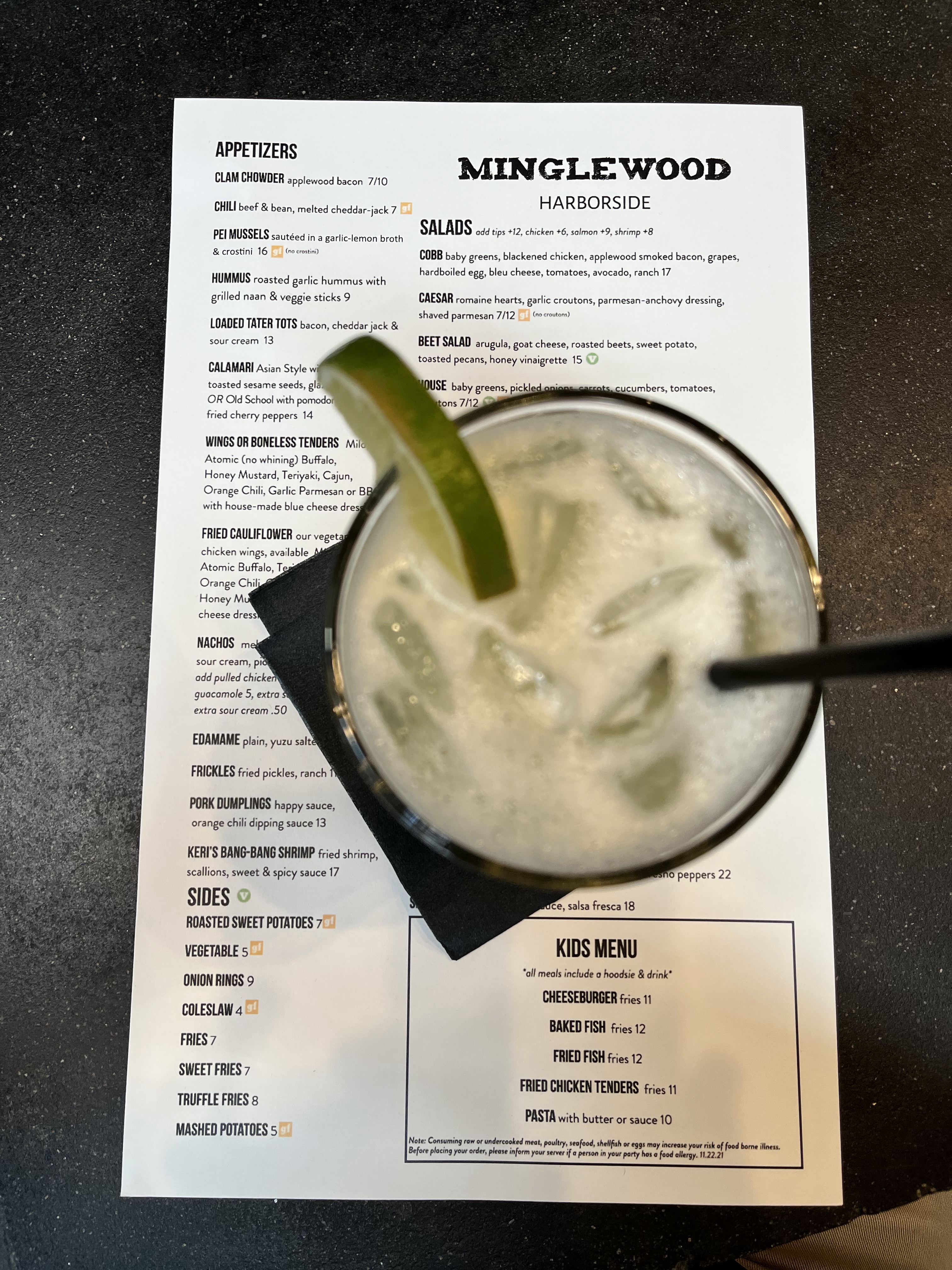 Minglewood Harborside on Rogers Street recently announced that they will be open for lunch on Mondays so we went right down to check it out. We were NOT disappointed!! Several other customers joined us in the early part of the afternoon for lunchtime goodness. I ordered the smoked chicken tacos and Jim got a Cobb Salad with blackened chicken. Perfect lunchtime treat. Very excited to see this news, especially since it’s Margarita Monday season!