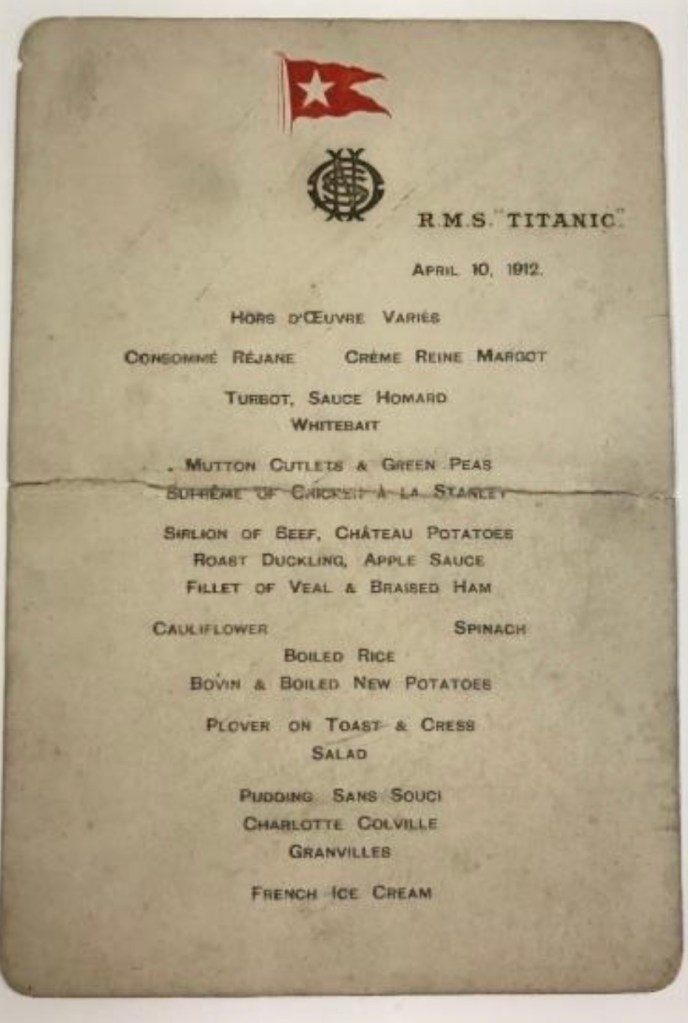This is the menu from the Titanic, she left South Hampton and Piping plover