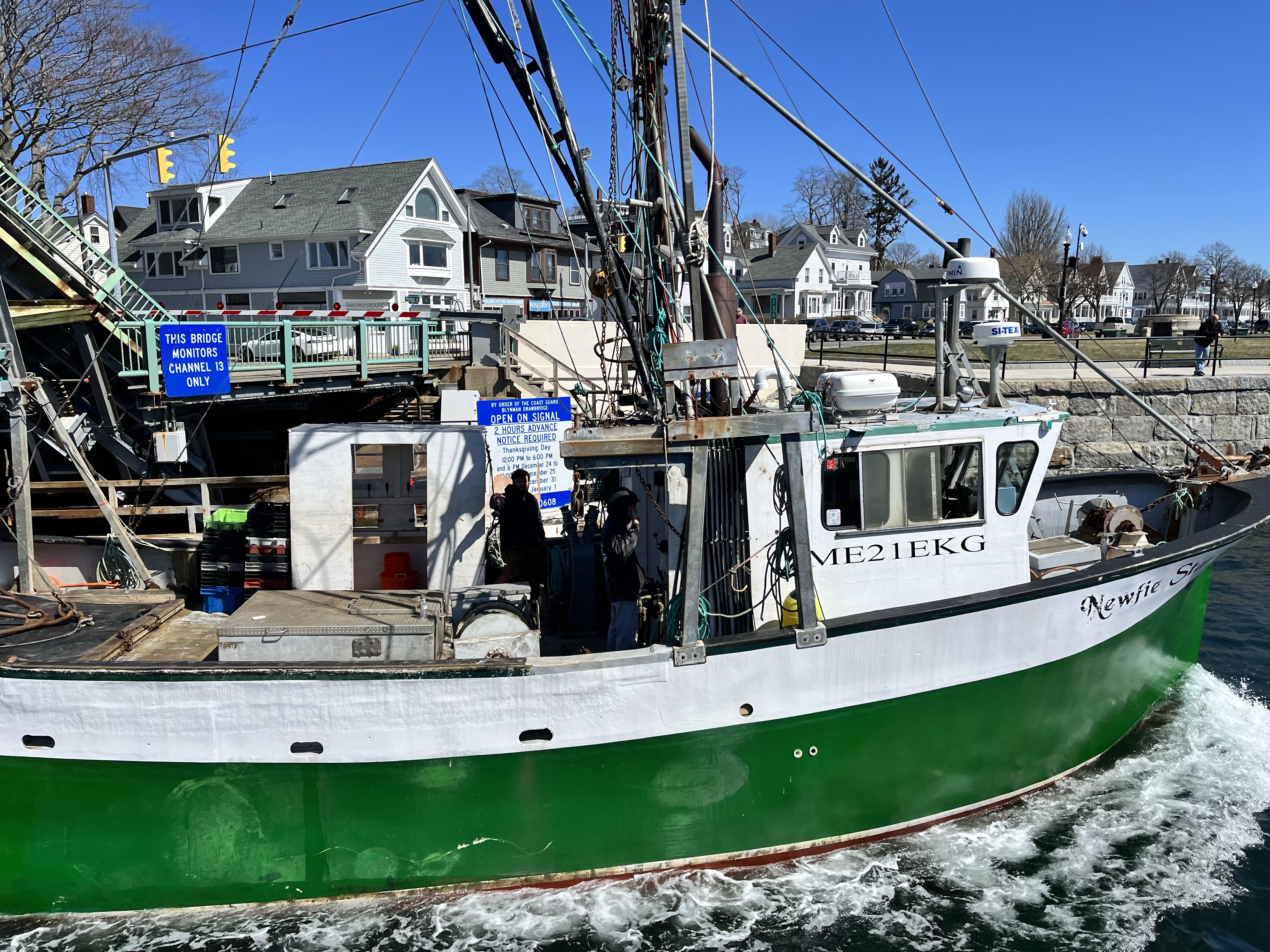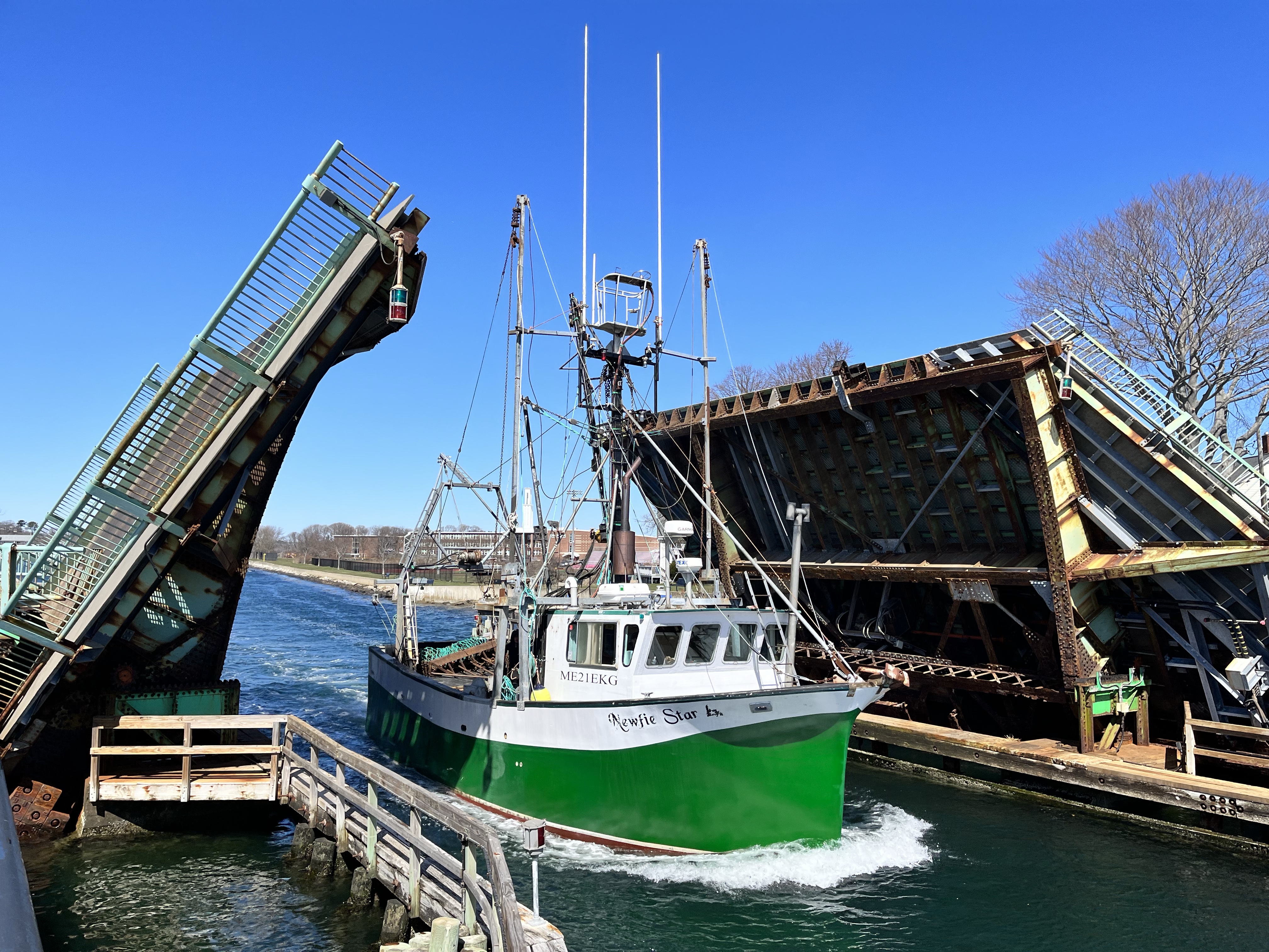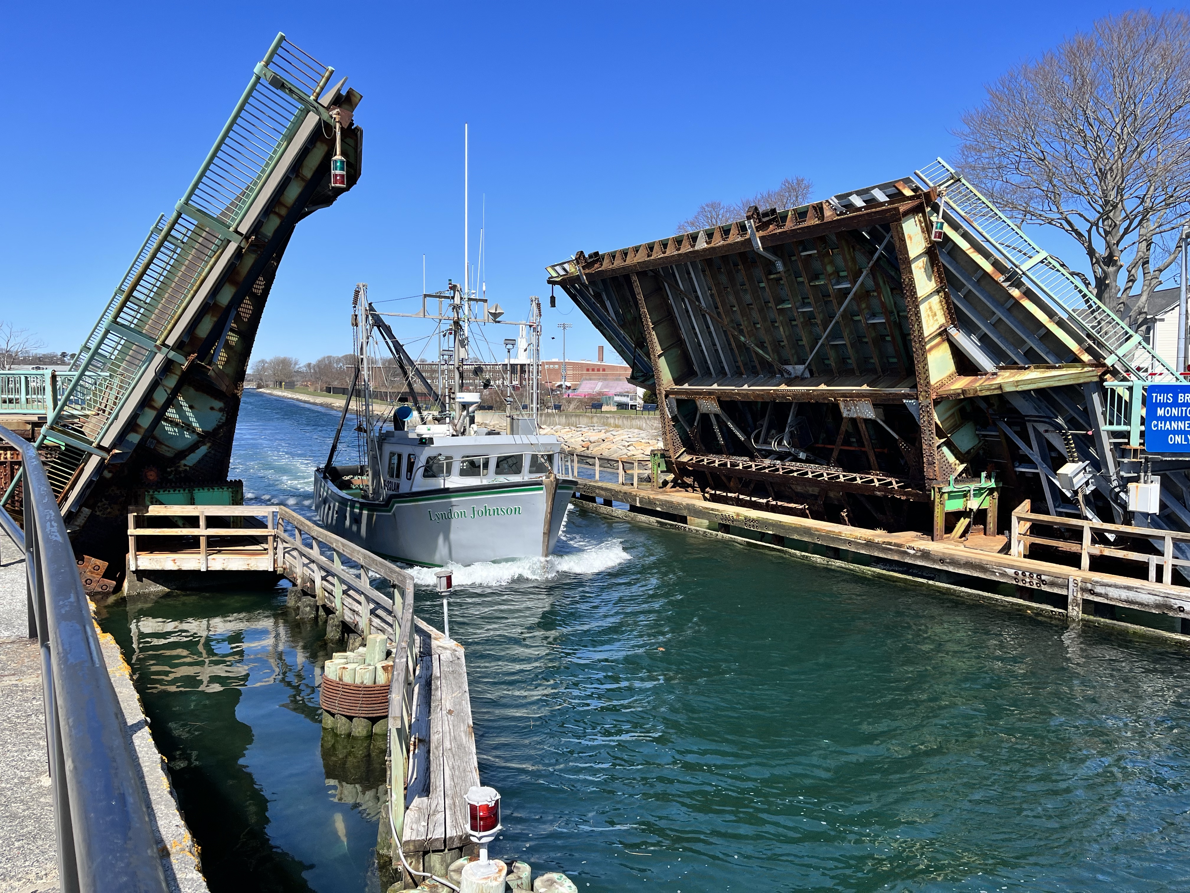 We happened to be on the Boulevard when we heard the warning bells that the bridge was going up. It was our first outgoing boat parade of the season: Lyndon Johnson, Newfie Star and Hurricane Indie! And so it continues………