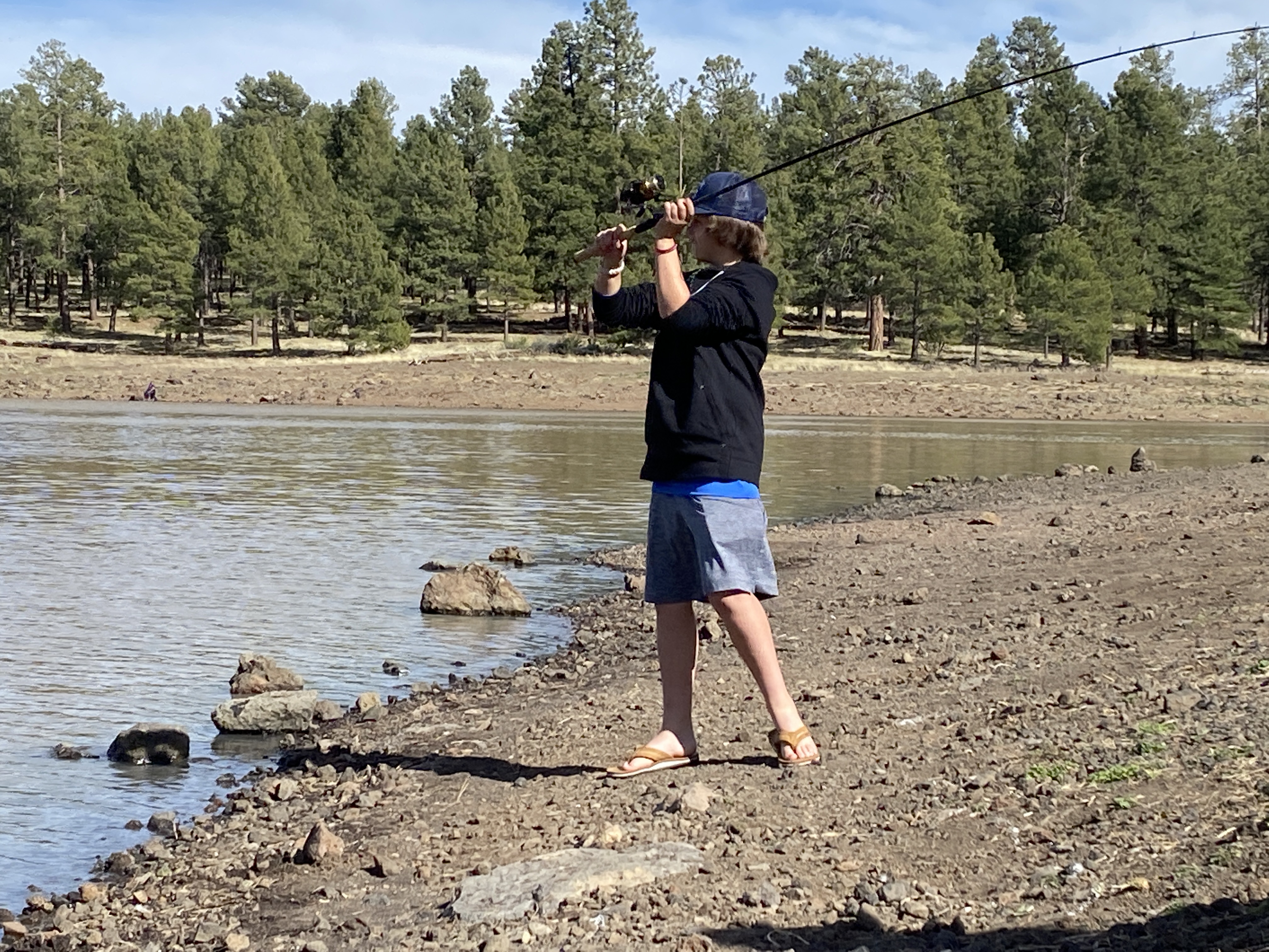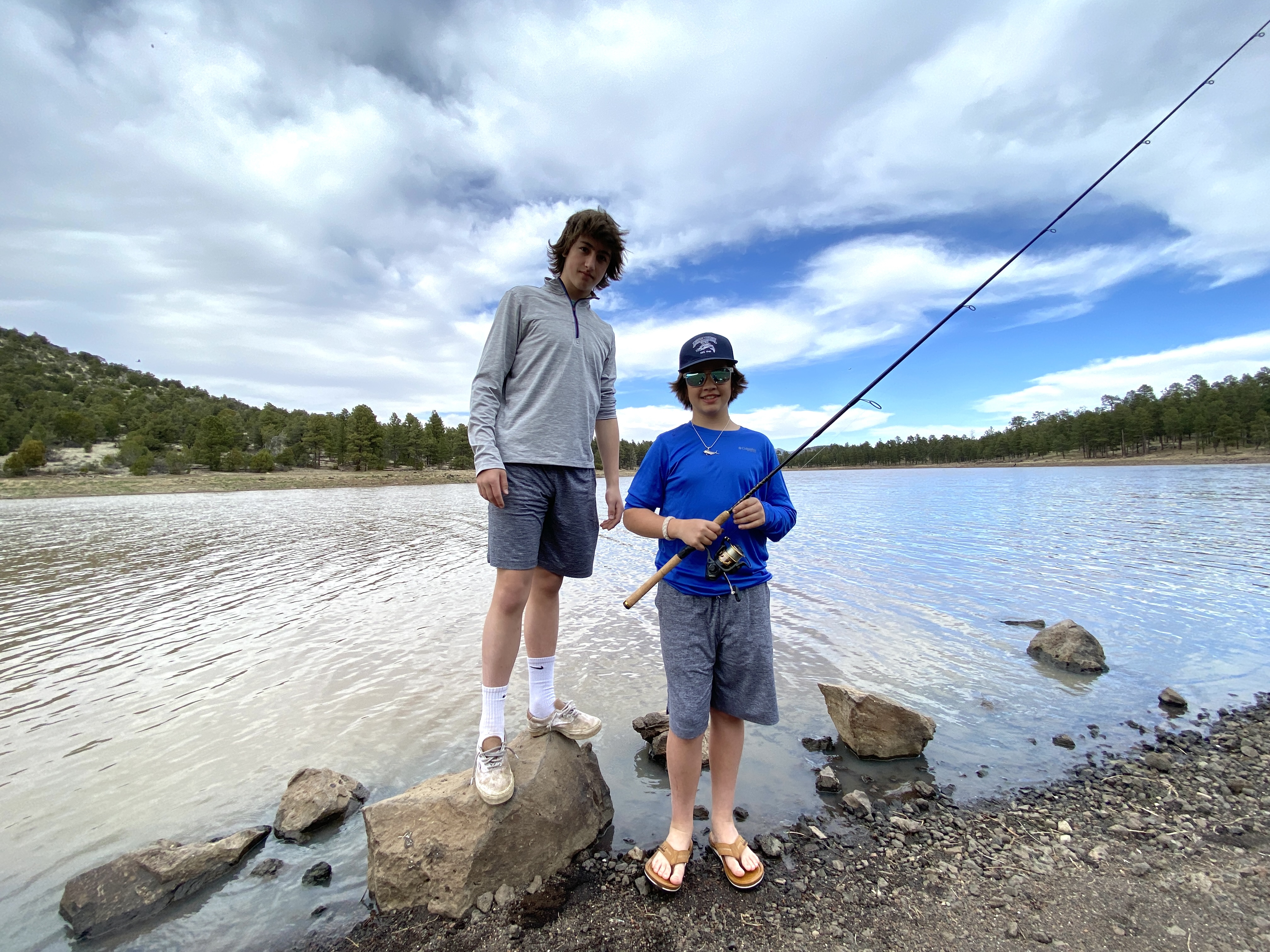 Slept for about five hours at a little hotel between the Las Vegas airport and the strip and woke ready to tackle our first full day of adventures…. or so we thought. By 8:45 pm we were spent and everyone was sound asleep except me…. and only because I wanted to write this post. We drove from Vegas to the Hoover Dam, up Route 40 for two hours, onto the iconic Route 66 and into Williams, AZ. Our adorable airbnb sits right across from the Grand Canyon railway and within walking distance to lots of cute shops and restaurants. By no means a bustling city with nightlife, but super cute in it’s own way. We let the boys fish on Kaibab Lake, had some drinks on our deck and then got dinner at the local brewery and barrel house….Where we immediately ran into someone from Gloucester. If you’re reading this, Jacqueline, I hope the rest of your trip is amazing!