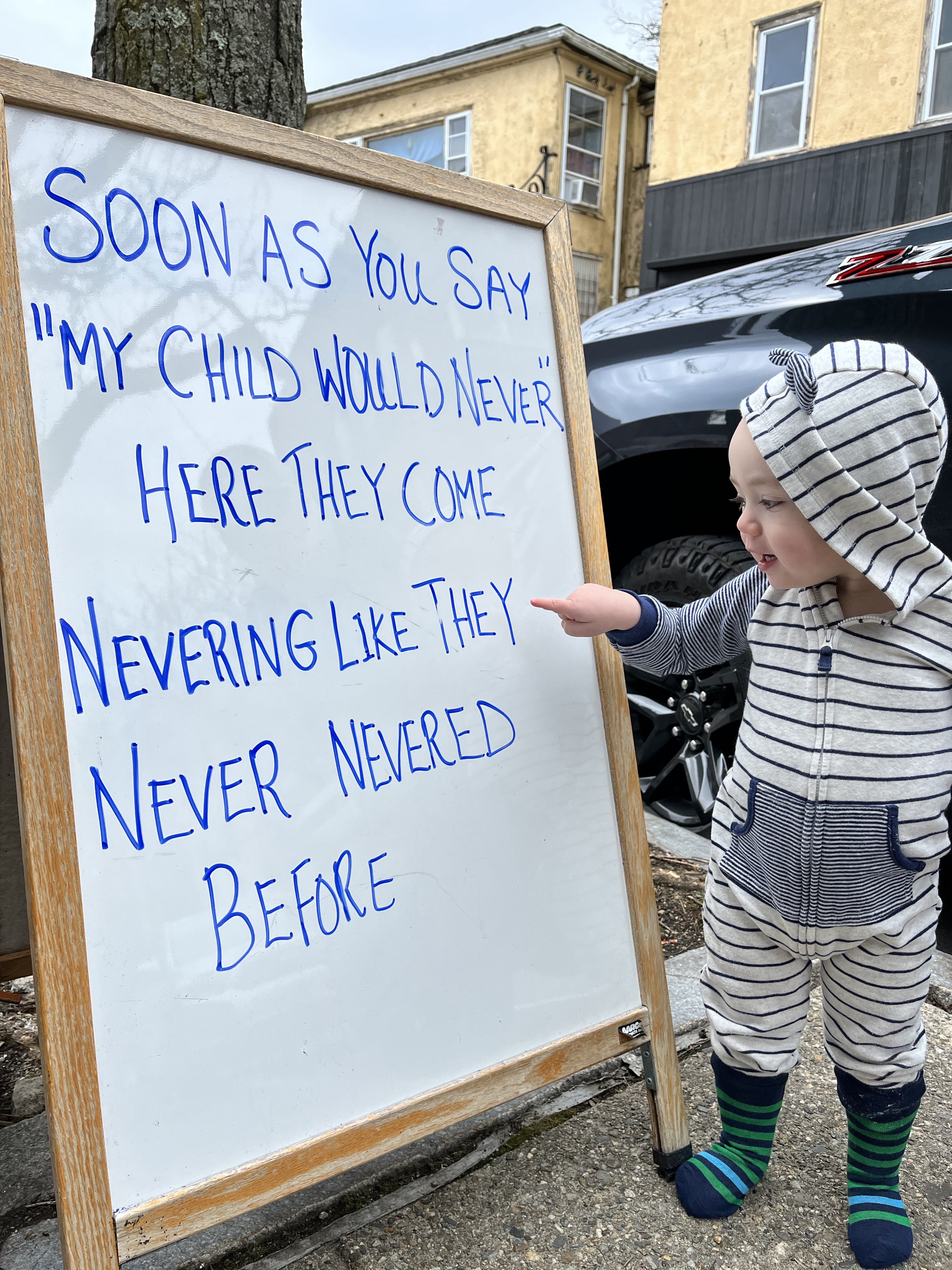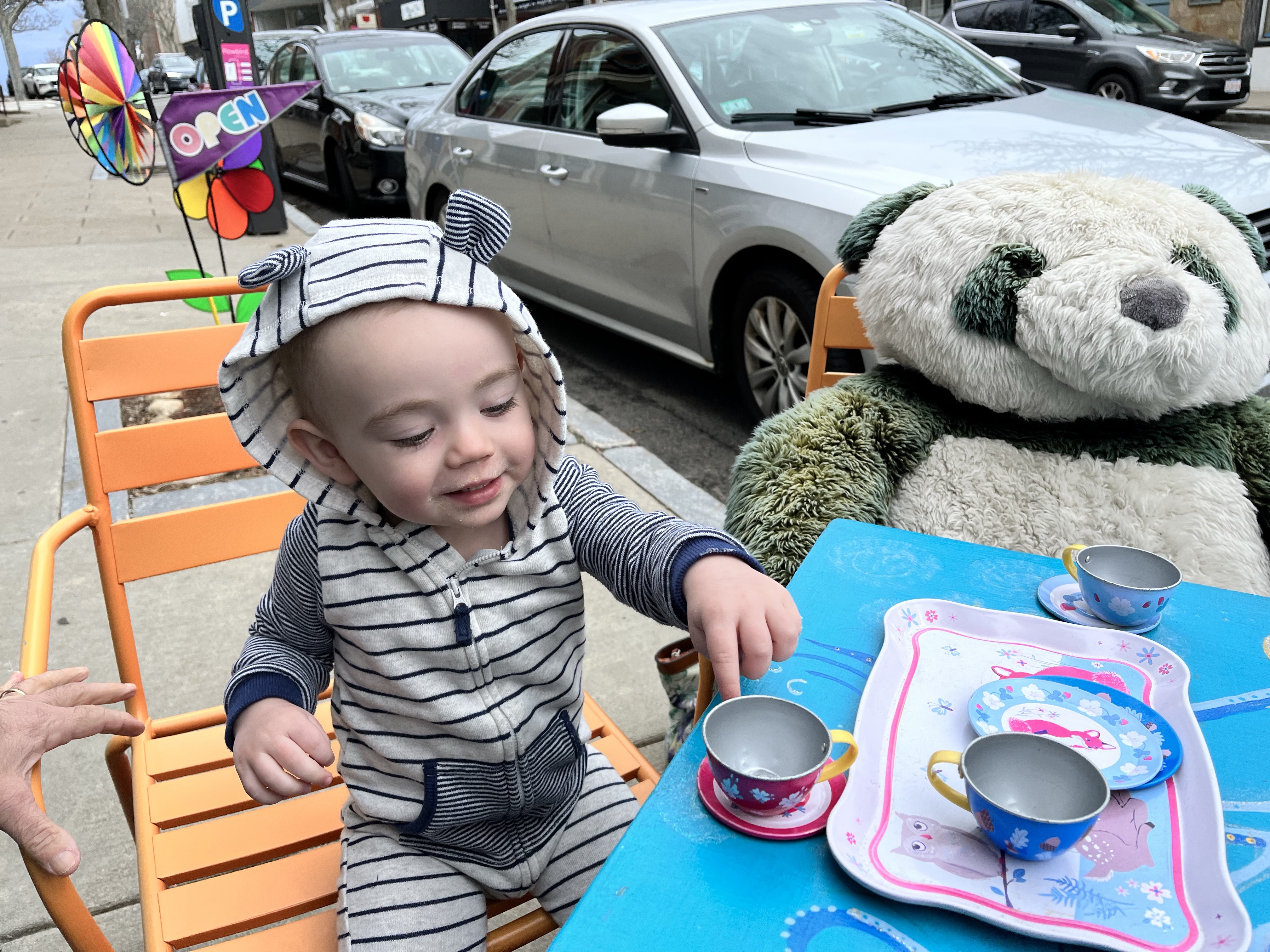 We visited Good Harbor Beach where the baby bee-lined to the ocean like a baby turtle seeking the water. Then plopped down at the edge of the cold water and surprised himself. (*So, be prepared with extra clothes). We stopped at Toodleoo’s for tea and toys. Sweats of New England had a cool sidewalk sign to tempt children and their fingers. We made a stop at Minglewood to meet family…always a hit. Pasta at Tonno also made for happy faces.