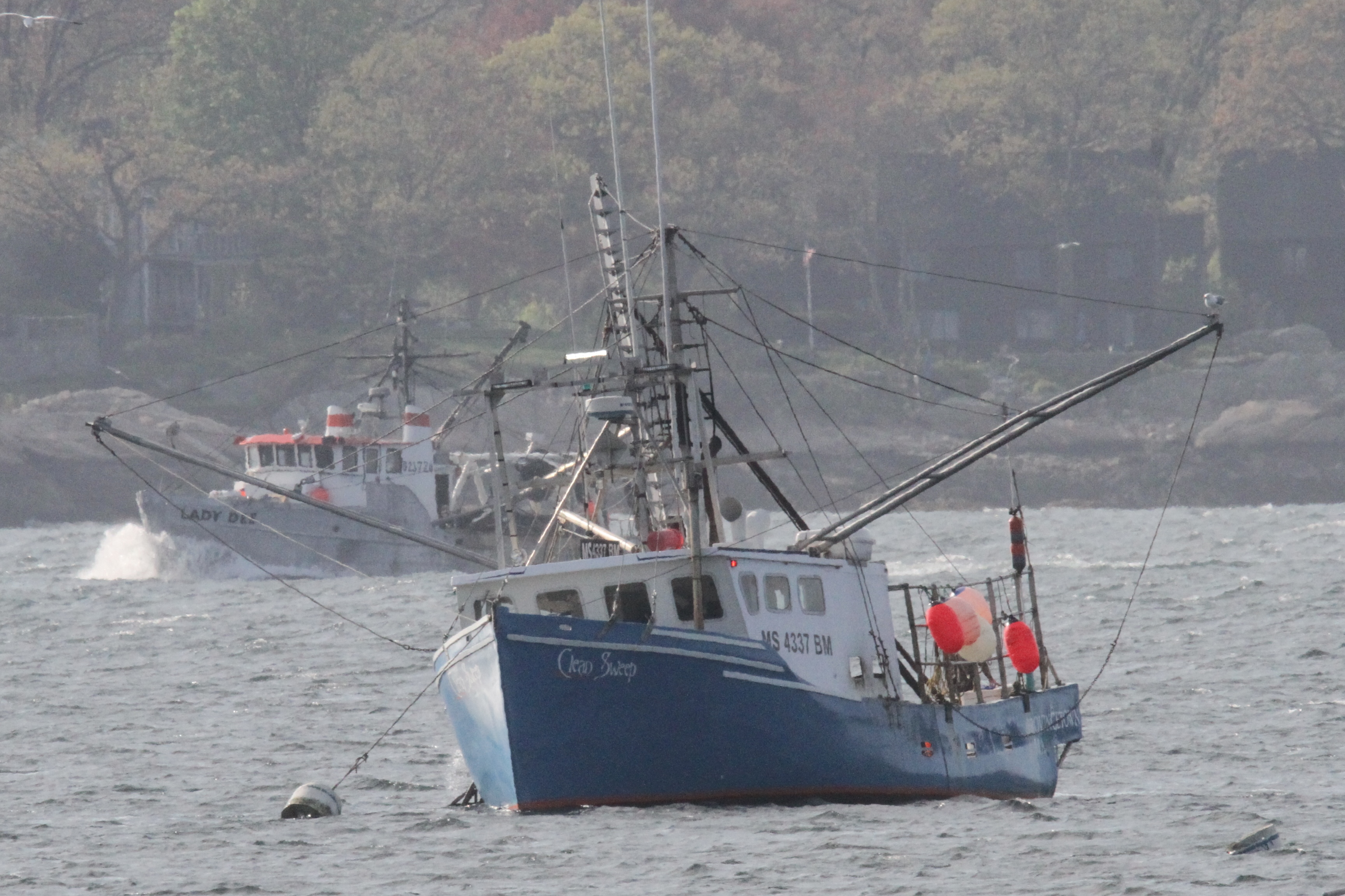 It was one of those days when there was a haze coming off the water as well as some fog lingering in the air in mysterious ways. There were several vessels fishing or heading out near the breakwater even though the water was pretty choppy. The vessels included My Girls II, Clean Sweep, Lady Dee, Joy Frances, First Impression II, Miss Rebecka, Whitney & Ashley, Bay Drifter and Michael D.