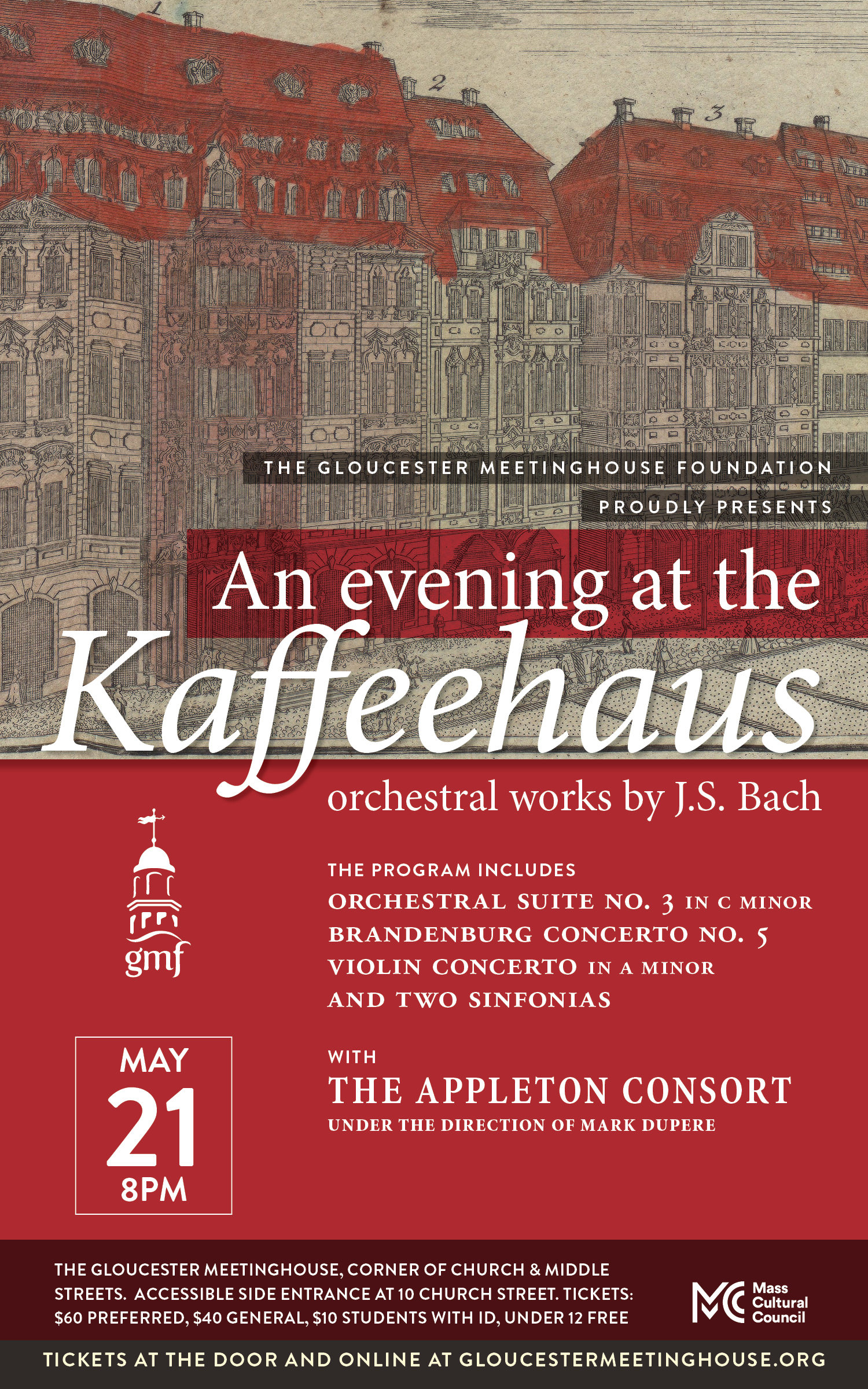 GLOUCESTER MEETINGHOUSE, BACH ORCHESTRAL CONCERT AT 8:00PM SATURDAY, MAY 21