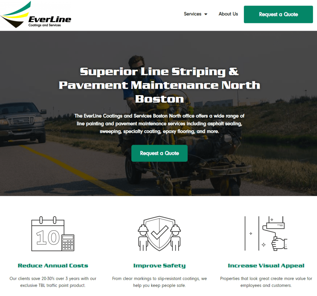 We’re pleased to announce the opening of the first U.S. location of EverLine Coatings and Services! EverLine is North America’s award-winning parking lot line striping and pavement maintenance company with over 10 years experience. Our team is serving clients north of Boston, including property managers, building owners, municipalities, general contractors and facilities operation managers.