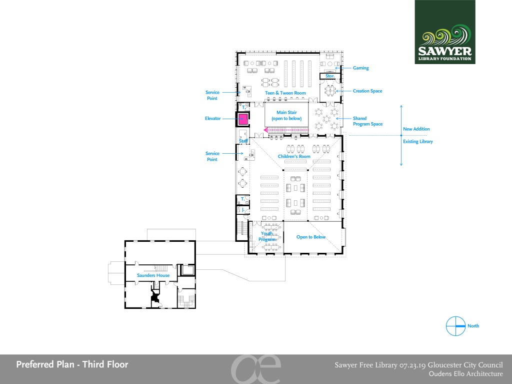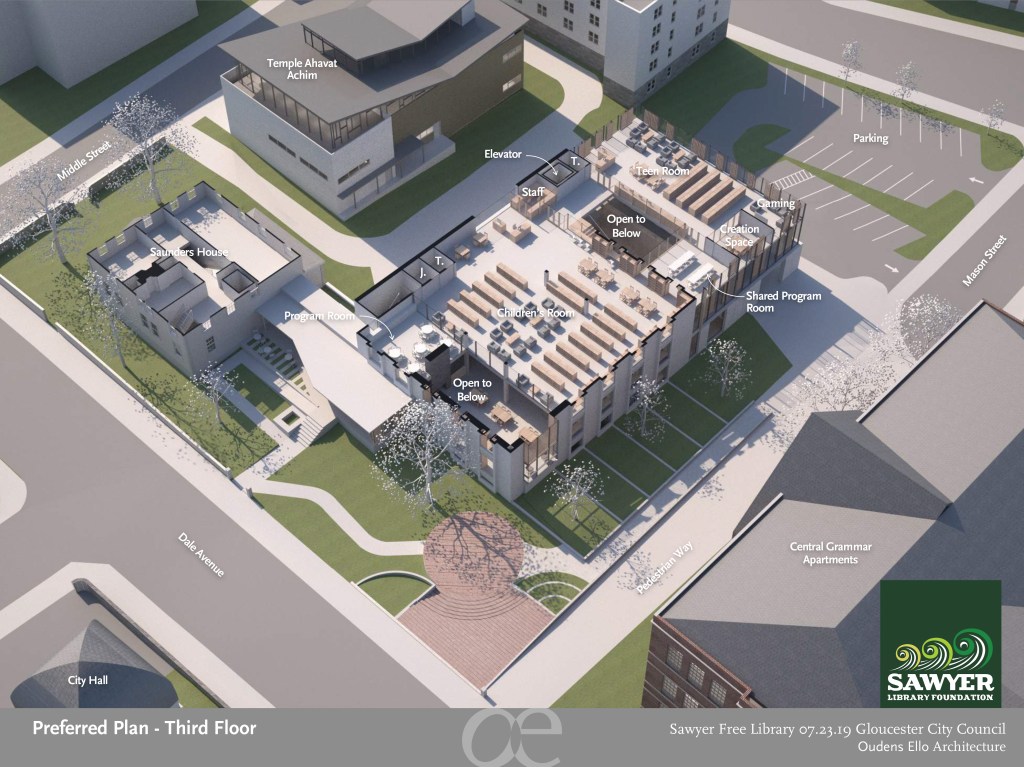 The design principles of Sawyer Free 2025 are grounded in the human experience and an ambition to put people first. The newly renovated and expanded Gloucester Lyceum and Sawyer Free Library will stand as an exemplar of what a 21st century civic nexus can and should be in terms of architecture, accessibility, sustainability, the use of natural resources and light, layouts, lines of sight, air quality and public safety. The end product will exponentially amplify the library’s ability to deliver critical services and outcomes not only for Gloucester, but for communities across Cape Ann and the North Shore as a place of equity, inclusion, connection, creation, compassion, renewal and advancement.