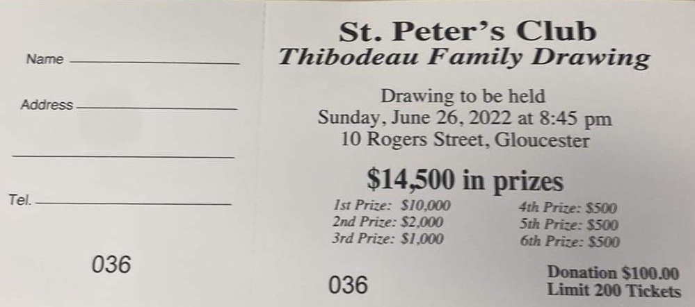 From Anthony Saputo: Hey buddy the St. Peter’s club is doing a $10,000 raffle to help out a single mom and daughter that lost everything they had in that fire On Western Avenue Wondering if you could promote it on good morning Gloucester