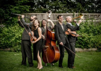 Praised by critics both individually and collectively for their virtuosity and passion for Klezmer music, the five musicians of Ezekiel’s Wheels Klezmer Band return for the seventh season of Music on Meetinghouse Green. Their repertoire includes traditional instrumental renditions and original compositions of Klezmer-inspired music as well as songs in Yiddish and English. A favorite of local audiences, they have played at the Kennedy Center and Yidstock, and continue to build an international following with their performance at the Third Biennial International Jewish Music Festival in Amsterdam where they received the Audience Pick Award. The five performers feature Abigale Reisman on violin and vocals; Jonathan Cannon on violin; Kristen Lamb on double bass and vocals; Nat Seelen on clarinet, and Pete Fanelli on trombone. An accomplished violinist and composer, Abigale Reisman is the music director at Temple Ahavat Achim in Gloucester.