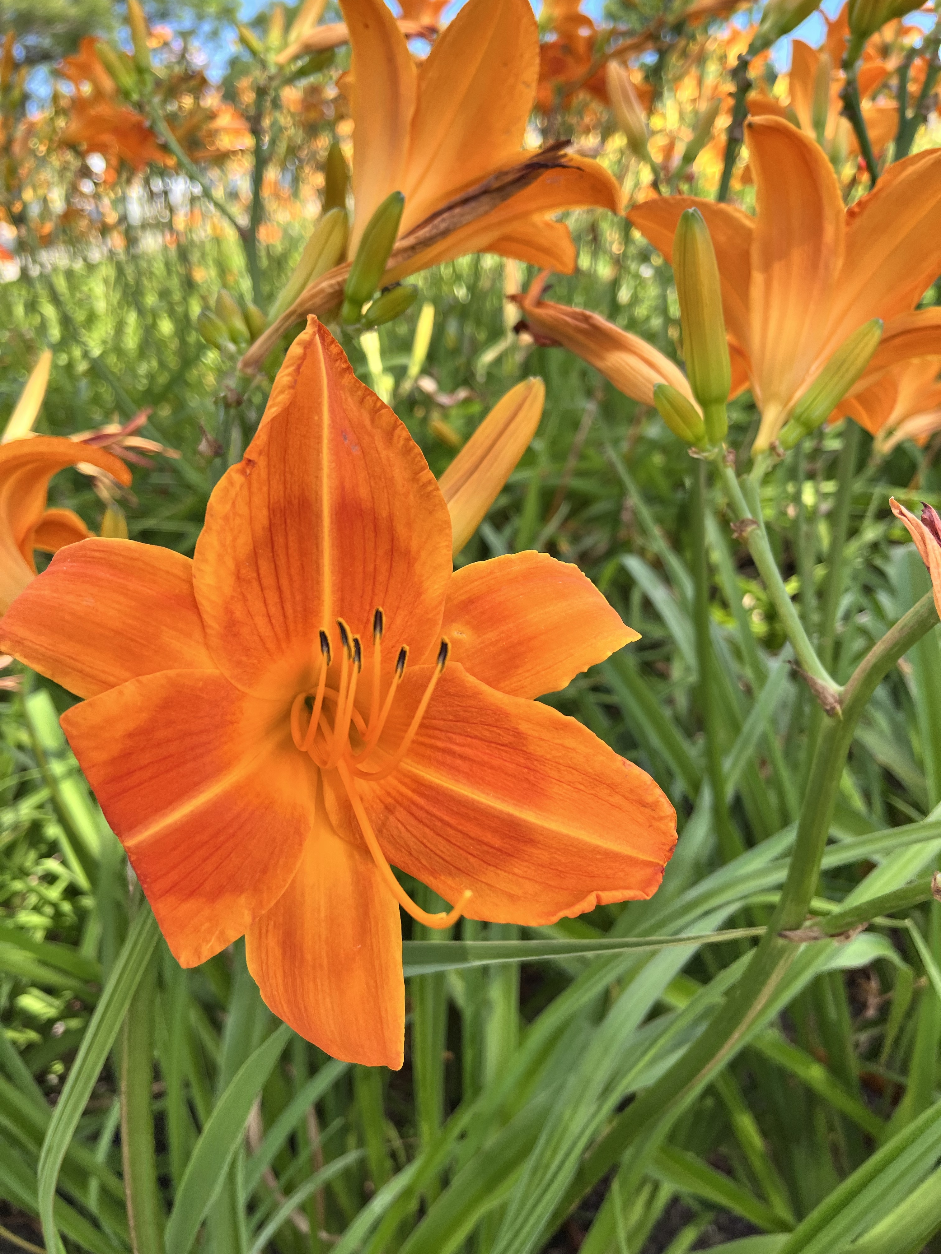 These were taken several days ago but I just need to point out how glorious all the flowers are in the Generous Gardeners plots around the city. The lilies had an especially pretty glow under the summer sky along the boulevard on this day. One more time: thank you Generous Gardeners!!! PS they accept donations;….. **Thank you Bobbie for the clarification that these are Daylilies**