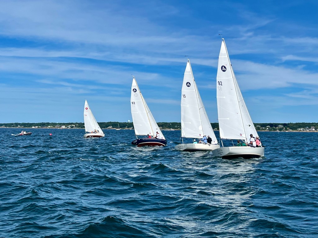 The first Lobster Crate Race was held yesterday at Pavilion Beach to a large and appreciative crowd of supporters. The Gloucester Police Department put this fundraiser together to support the Gloucester High School weight room renovation and by all accounts, it was a huge success. There were 4 classes of participants that took their chances running across a bridge made of plastic crates that bounced and tilted with the waves. As expected, the youngest and lightest were most successful. There was a Municipal group which will need a great deal more practice before next year’s event. The event drew several boats, pedestrians and beach-goers who cheered everyone on with enthusiasm. Follow the Gloucester Fishermen Athletic Association on Facebook for updates and donation information.