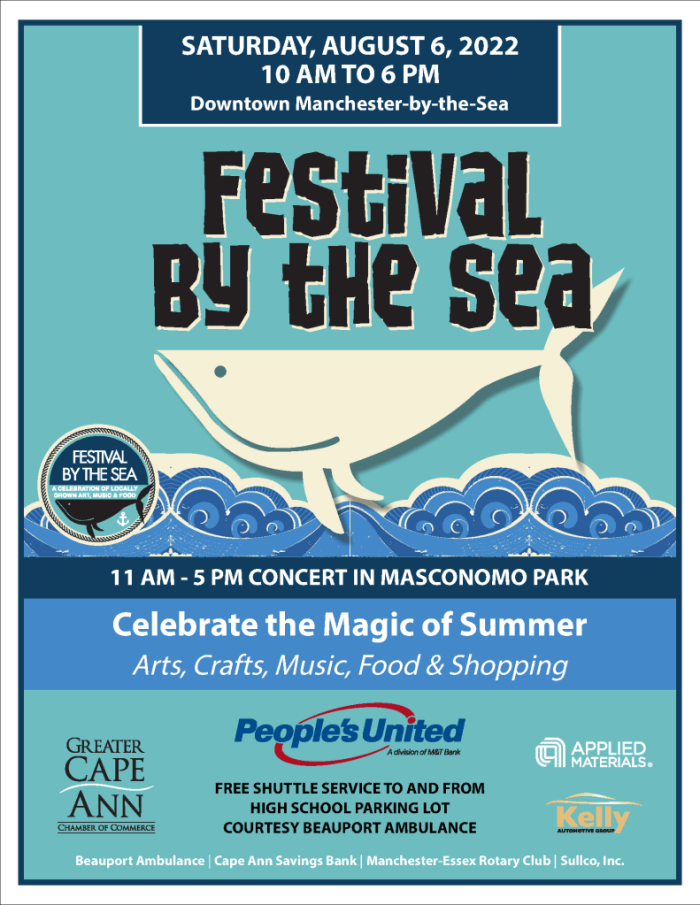 Join us in downtown Manchester-by-the-Sea on Saturday, August 6th from 10 am to 6 pm for shopping, music, food, and drink. Over 80 talented artisans will be showing and selling their unique creations in Masconomo Park, Reed Park and Town Hall Park. Enjoy food by the LobsterRoller, Crepe du Jour, Rev Kitchen and The Whoo(pie) Wagon, and beer from Great Marsh Brewery. For a full list of artisans, visit the Greater Cape Ann Chamber website.