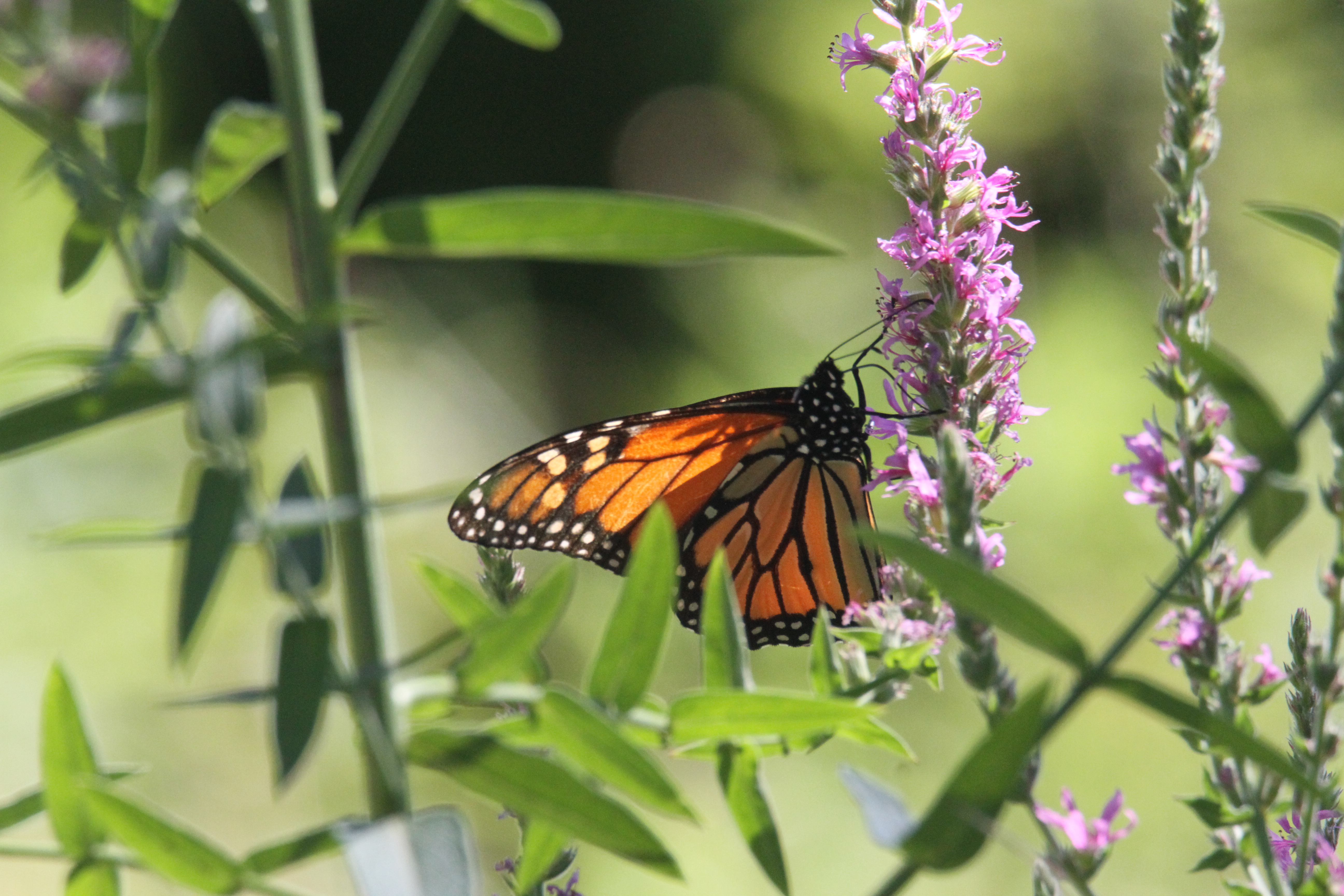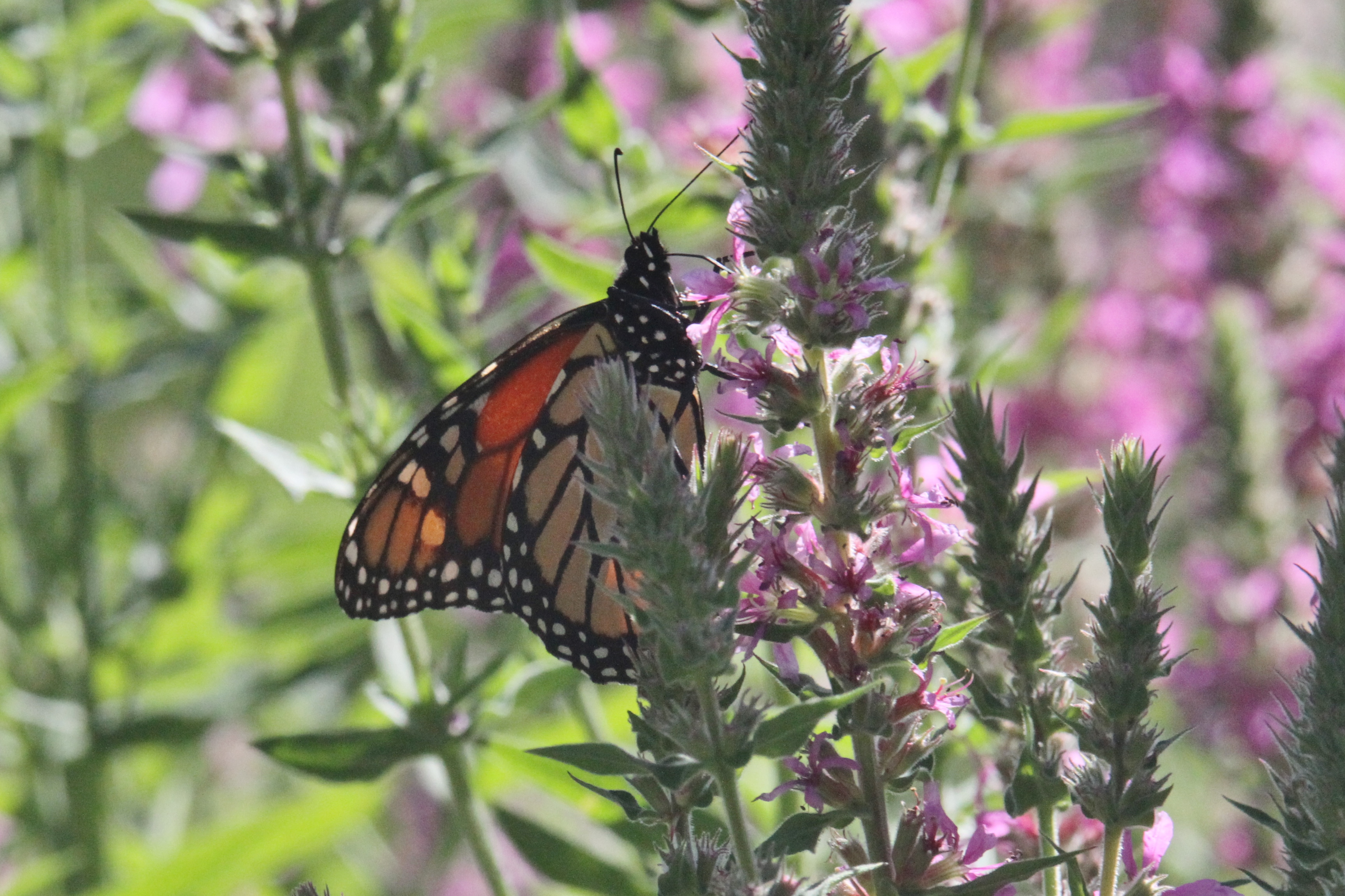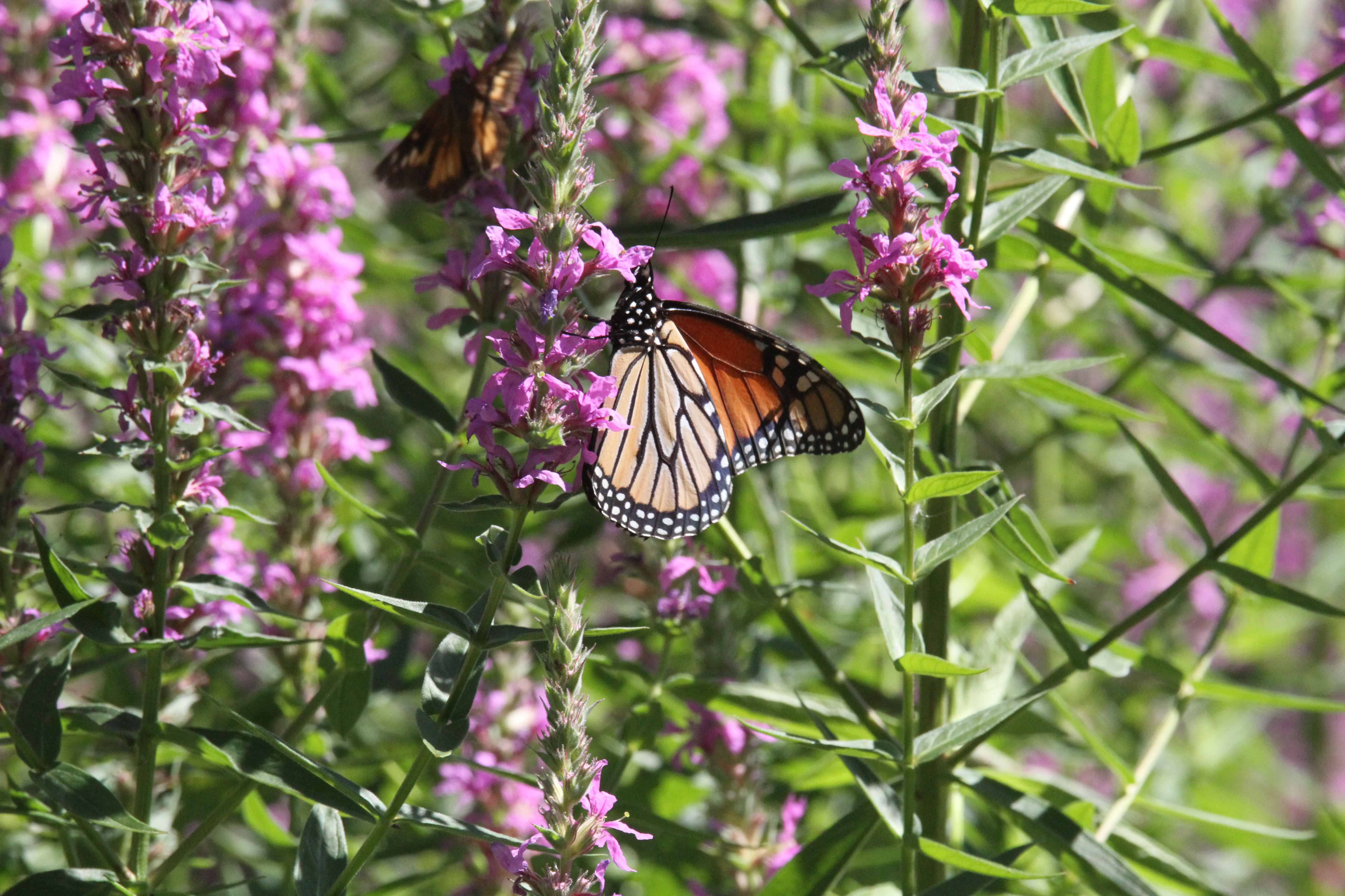 Perhaps you, like me, have noticed the monarchs have arrived. The monarch news has been pretty grim recently but it feels as though we are blessed with a fair number. This is in part due to efforts to lure them with milkweed and other butterfly attractors by several Cape Ann residents. Thank you to all of you for your efforts on their behalf. It is very nice to see them about and enjoying plentiful loosestrife in our backyard. Several species were taking advantage of the plentiful blooms in addition to the monarch though I cannot identify them all. Monarchs are ceaselessly photogenic. For additional photos and story details, please visit Pat D’s Photos and Adventures on Facebook.