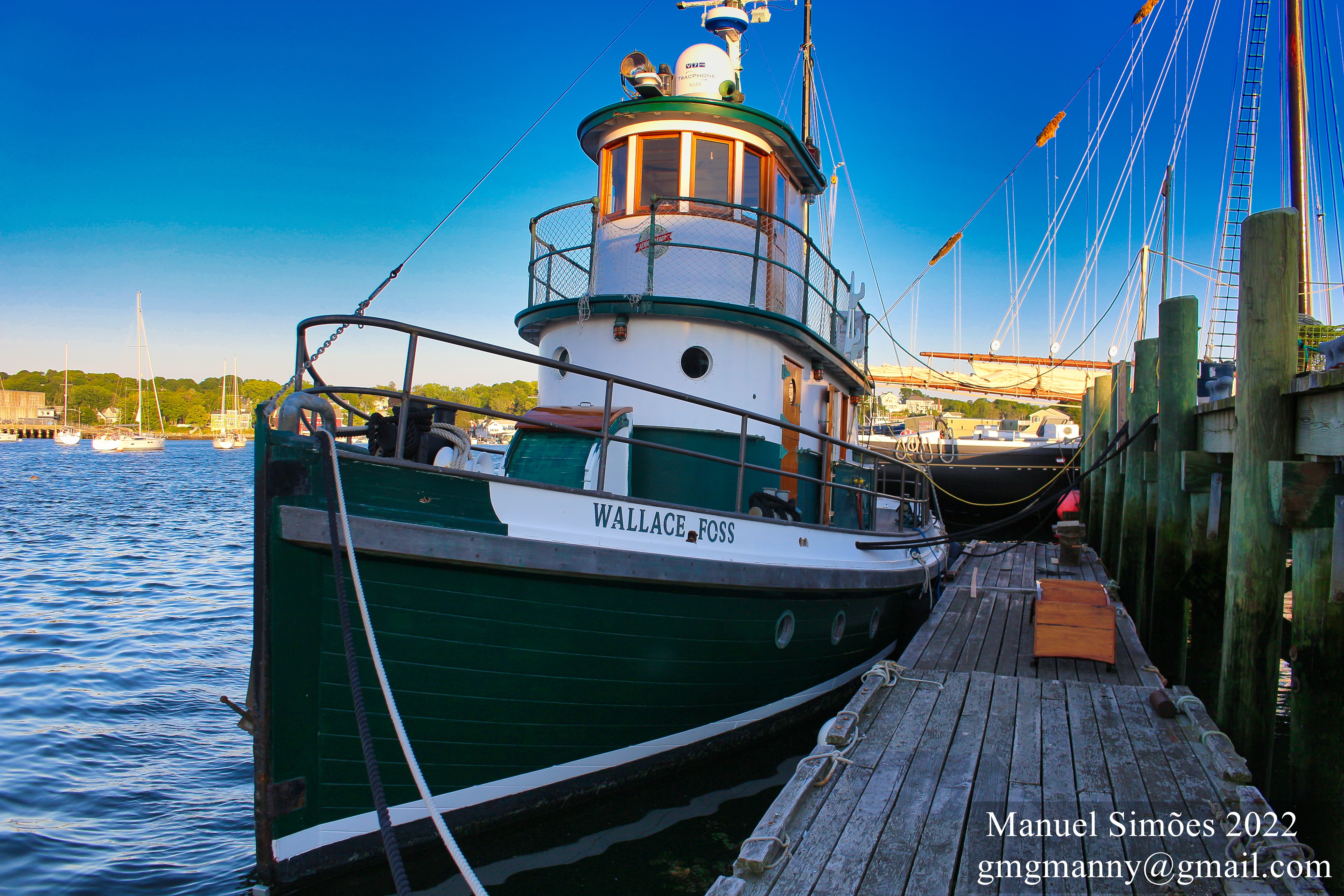 “The tugboat Wallace Foss once led a charmed, if hard-working life in the Pacific Northwest. And the fate of this wooden boat changed even before she was launched: her owners modified the original passenger vessel design to that of a tugboat in the middle of the construction process. Originally christened as Oscar B. in 1897 at Tacoma, WA, today the tug carries the name Wallace Foss and is berthed in Gloucester Harbor.