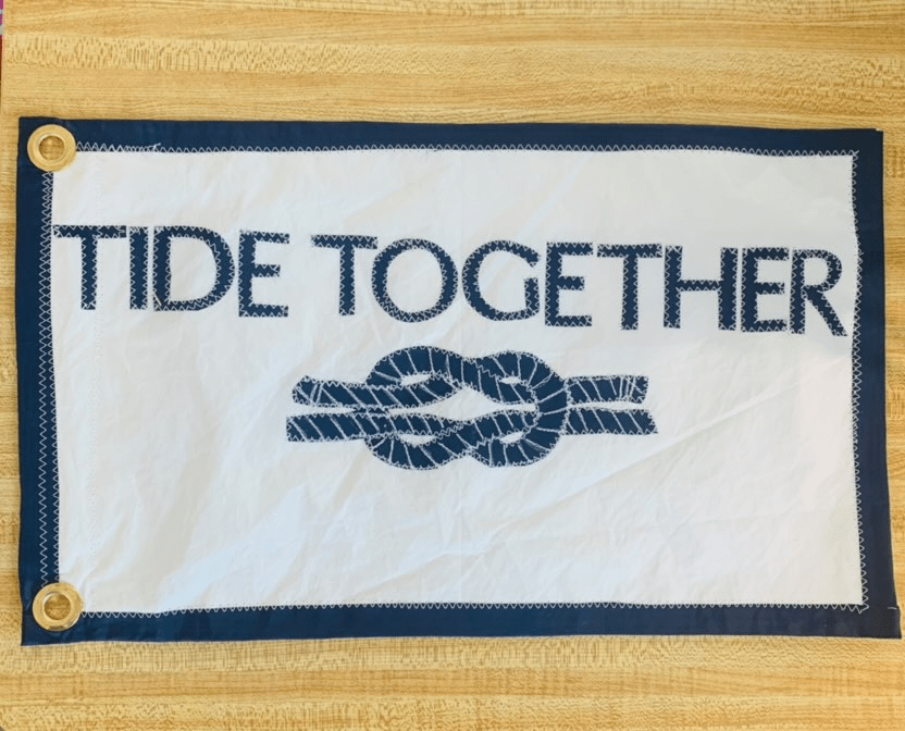 Check Out The New Boat Flag That Regina Made at Again and Again Sailbags with Our Boat Name and Logo on It!