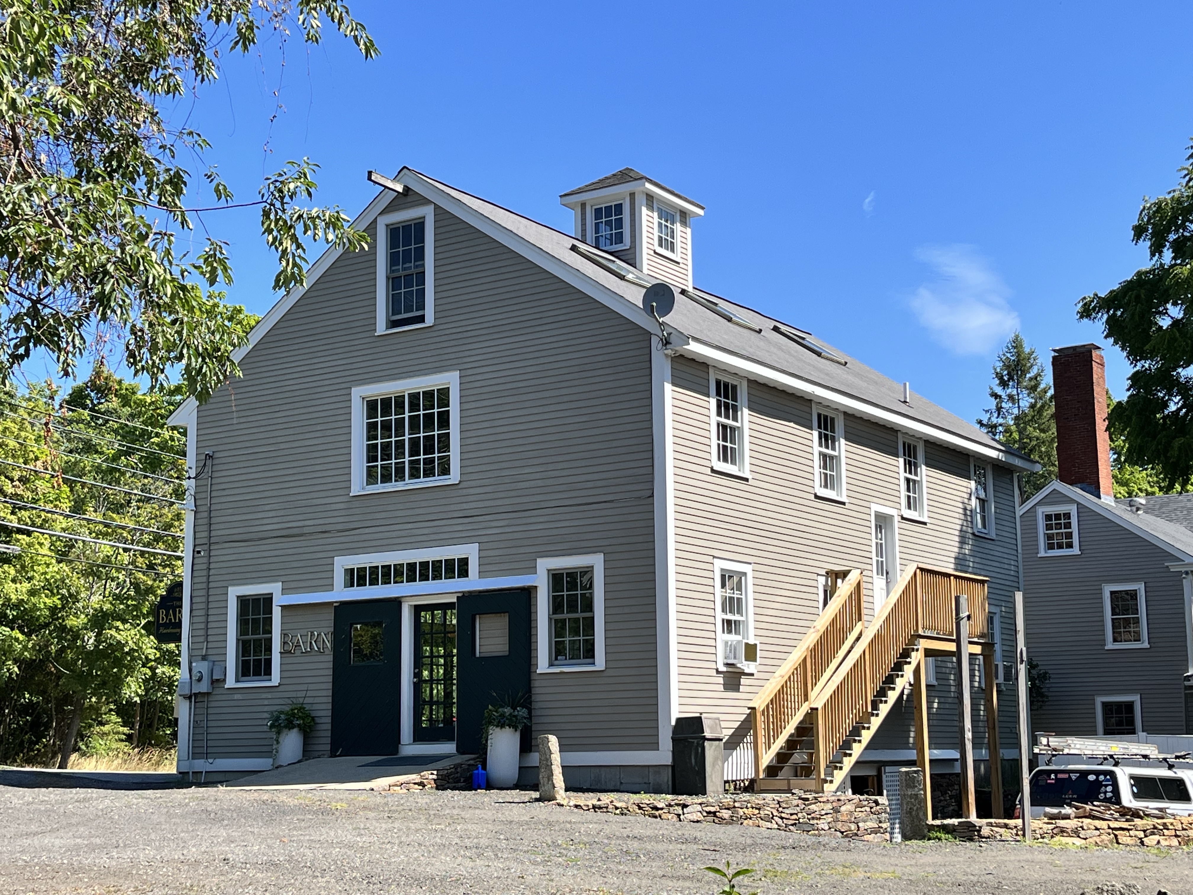 The Barn Hairdressing Lounge is easily visible from the scenic byway route through Essex at 1 Main Street. More modern than most of the barns I am drawn to take photos of, it’s quite regal and handsome and has an impressive footprint. They do not appear to have a website, but their phone number is easily available using Google.