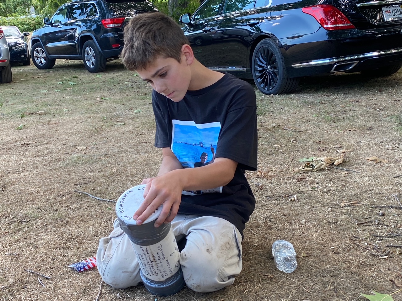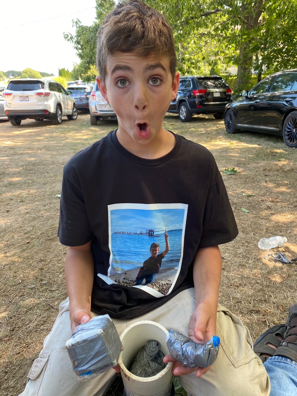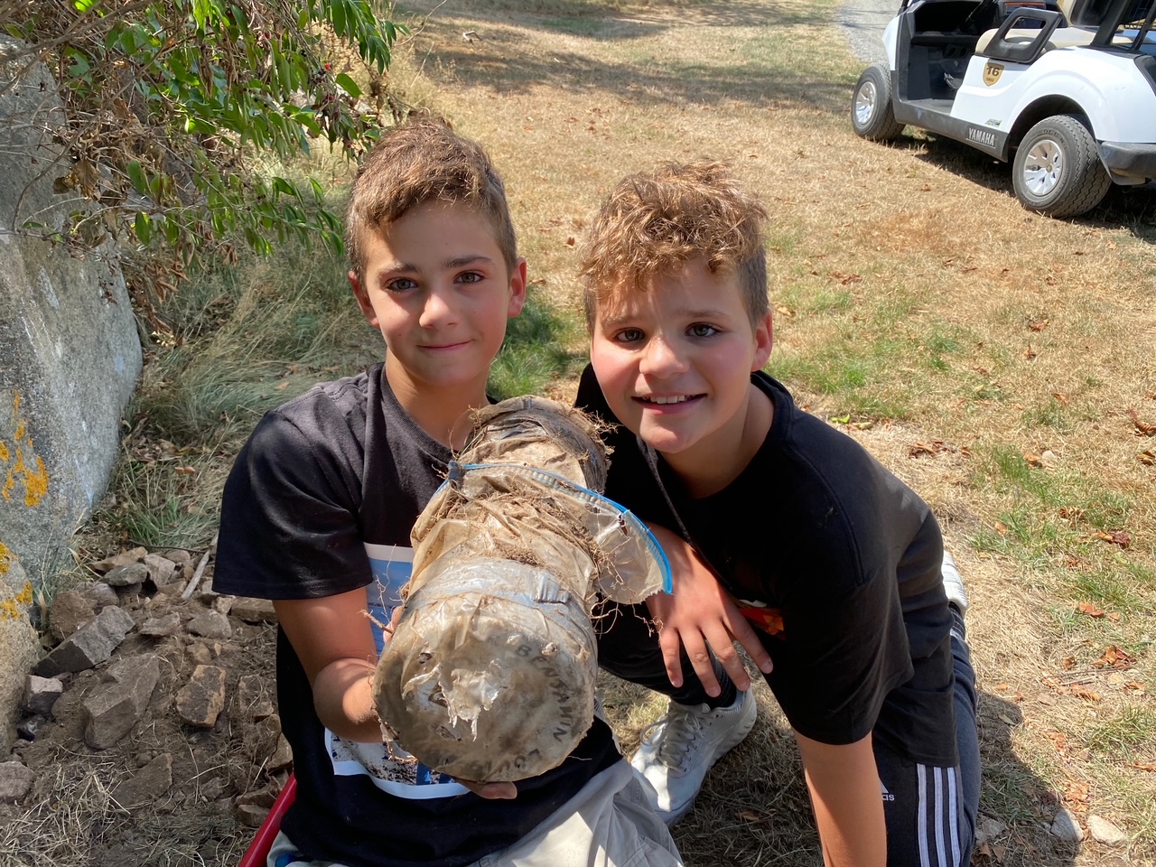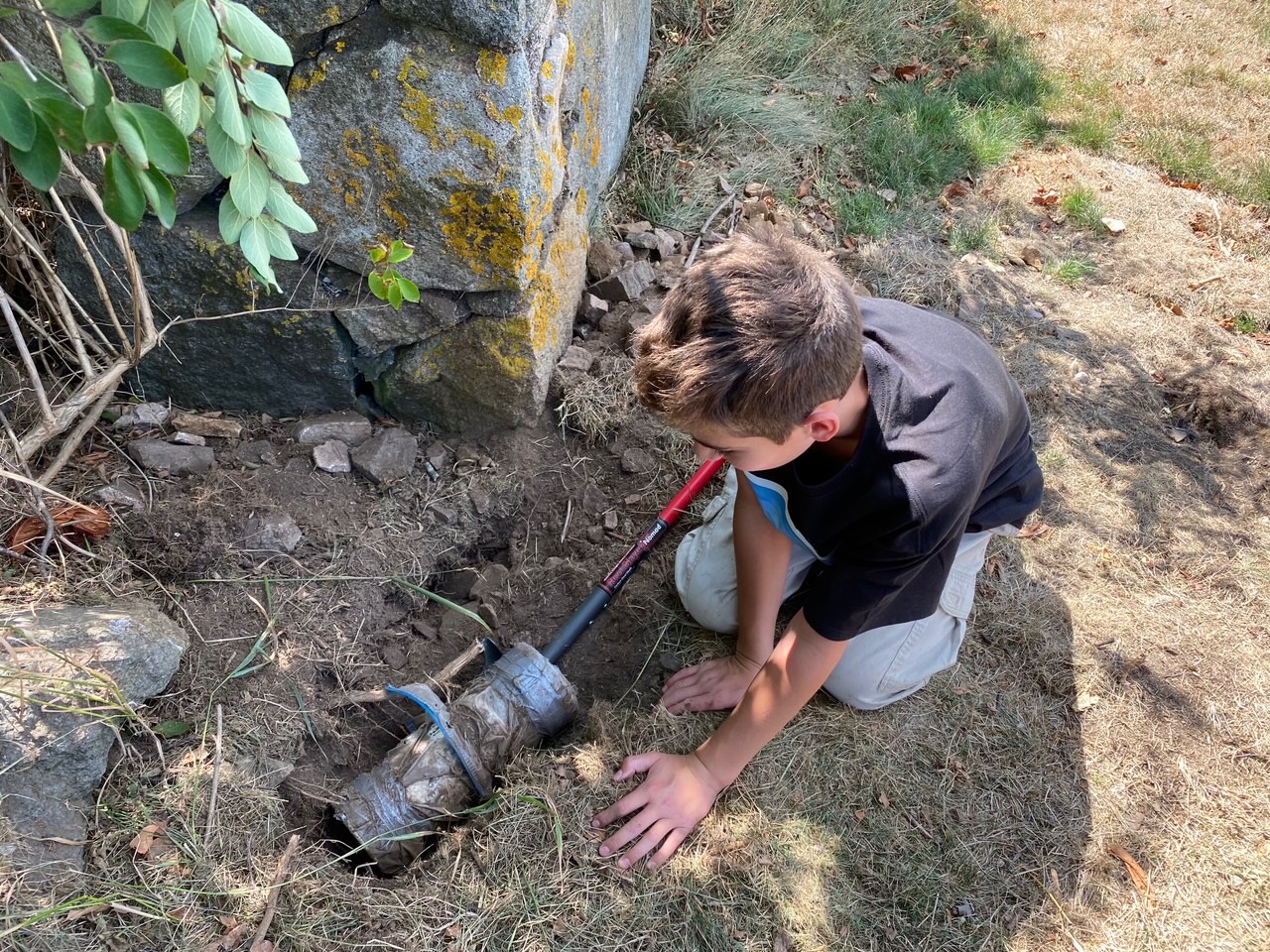 The Dubins were expecting the birth of Benjamin and visiting Gloucester in the summer of 2010. They buried the time capsule intending to share it with Benjamin when he turned 10. As we all know, COVID interfered with this plan but the family returned to Gloucester as Benjamin is now 11 and his brother Avery is 9 to search for the time capsule. The Bass Rocks staff was very cooperative nd helpful and the well-wrapped time capsule was recovered mid August. Dr. Dubin supplied some photos for me to share. What a neat story!