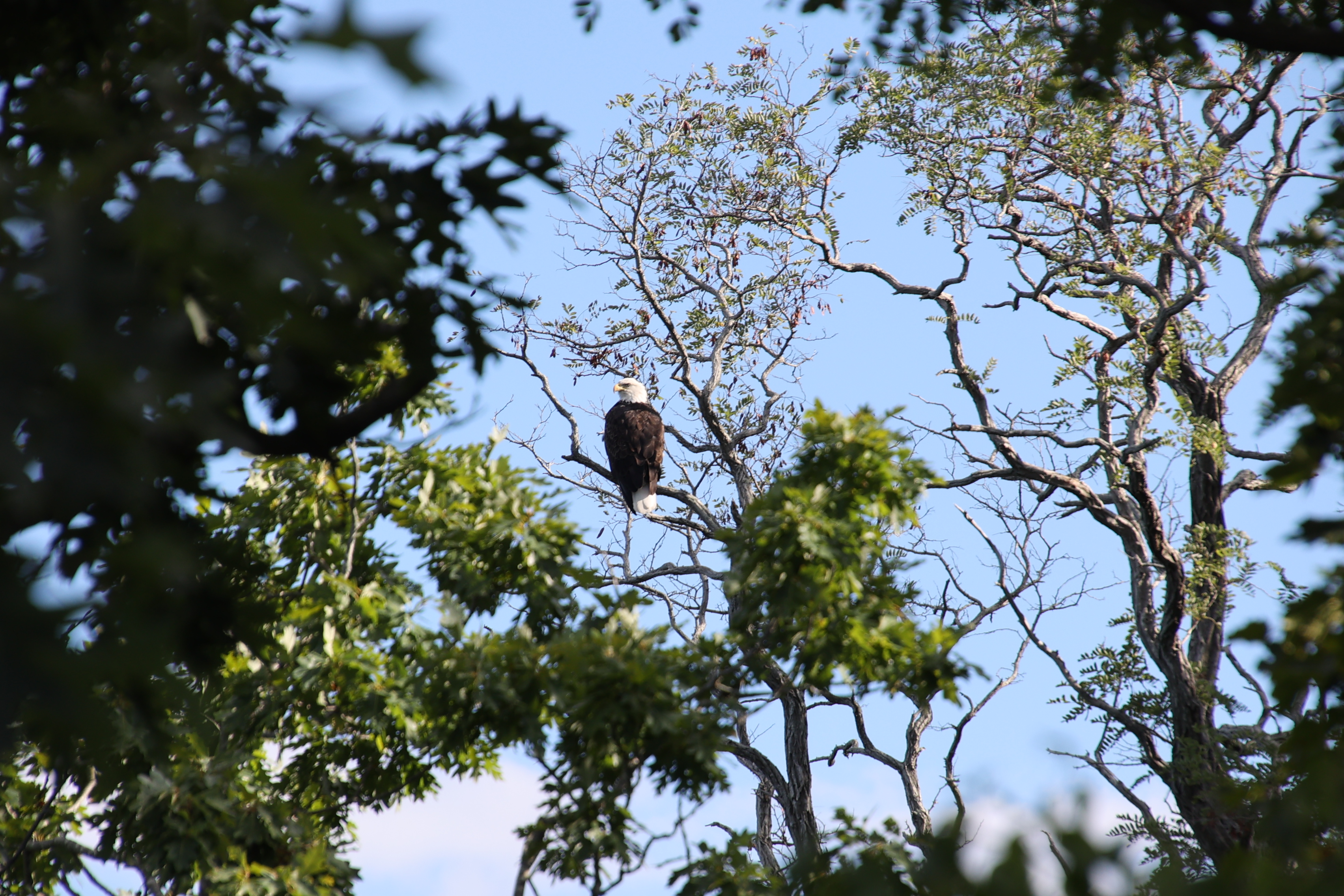 I have spotted this eagle overlooking Stage Fort Park a couple of times recently. It doesn’t typically hang around for long and the leaves hide it pretty well but it’s still a spectacular blessing to have it watching over our harbor.