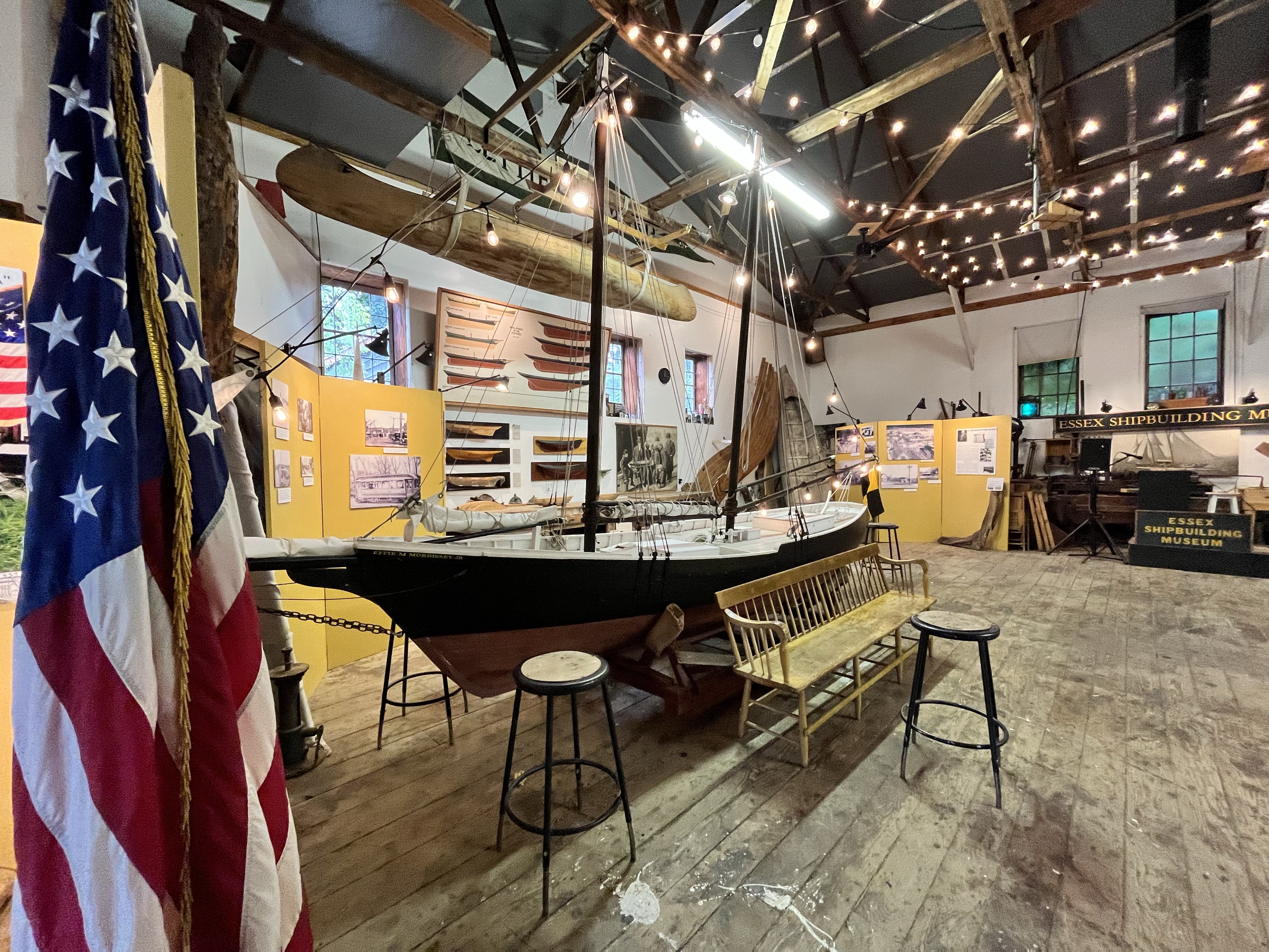 The day I visited, I was unable to go to the Schoolhouse portion of the exhibit as it had to unexpectedly close. But I did view the portions of the exhibit in the Essex Shipbuilding yard and at Town Hall (3rd floor). I had not realized the exhibit was set up in this manner, but I think you can get a great deal out of it even if you can’t get to all the locations. It can be a little confusing, but look for the well placed signage for guidance.
